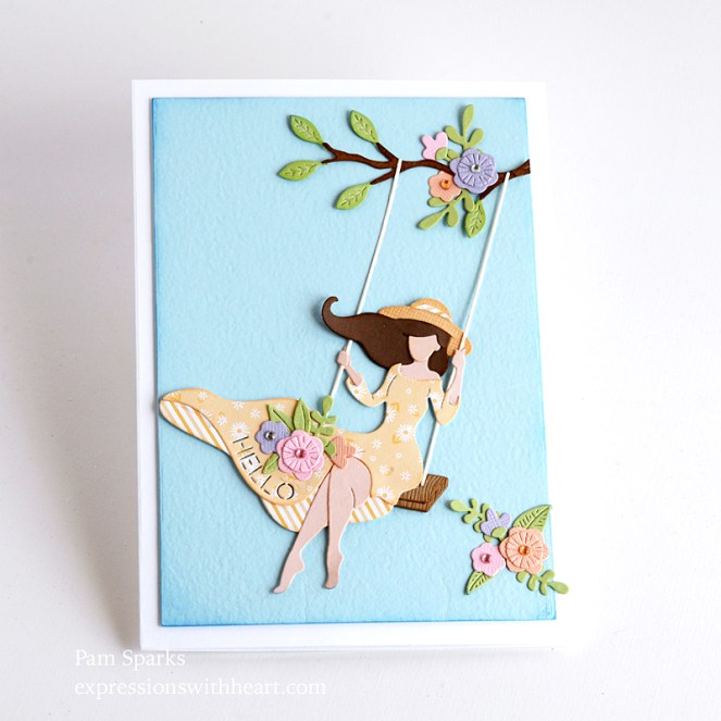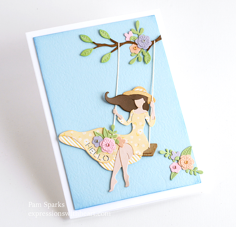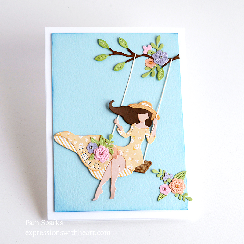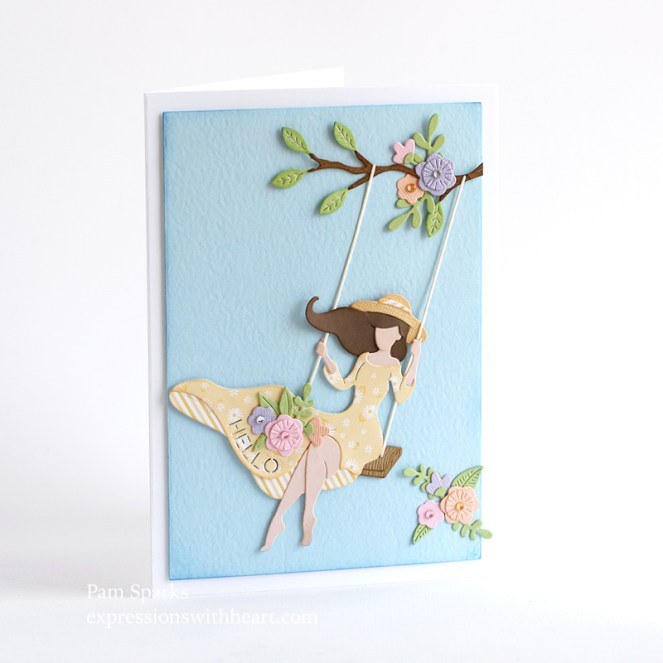 Beautiful card. She looks like she’s swinging in a lovely garden.