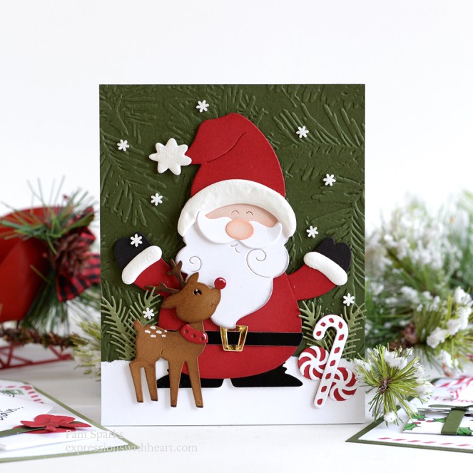 Hi everyone!  So…..I fell in love with this adorable reindeer when I saw it!  Had to have it! lol  The Santa has grown on me too!  The sentiments that go with these dies are adorable too and have dies and make fun tags a long with being so cute on cards! Rudolph would be so cute by himself on a tag!
