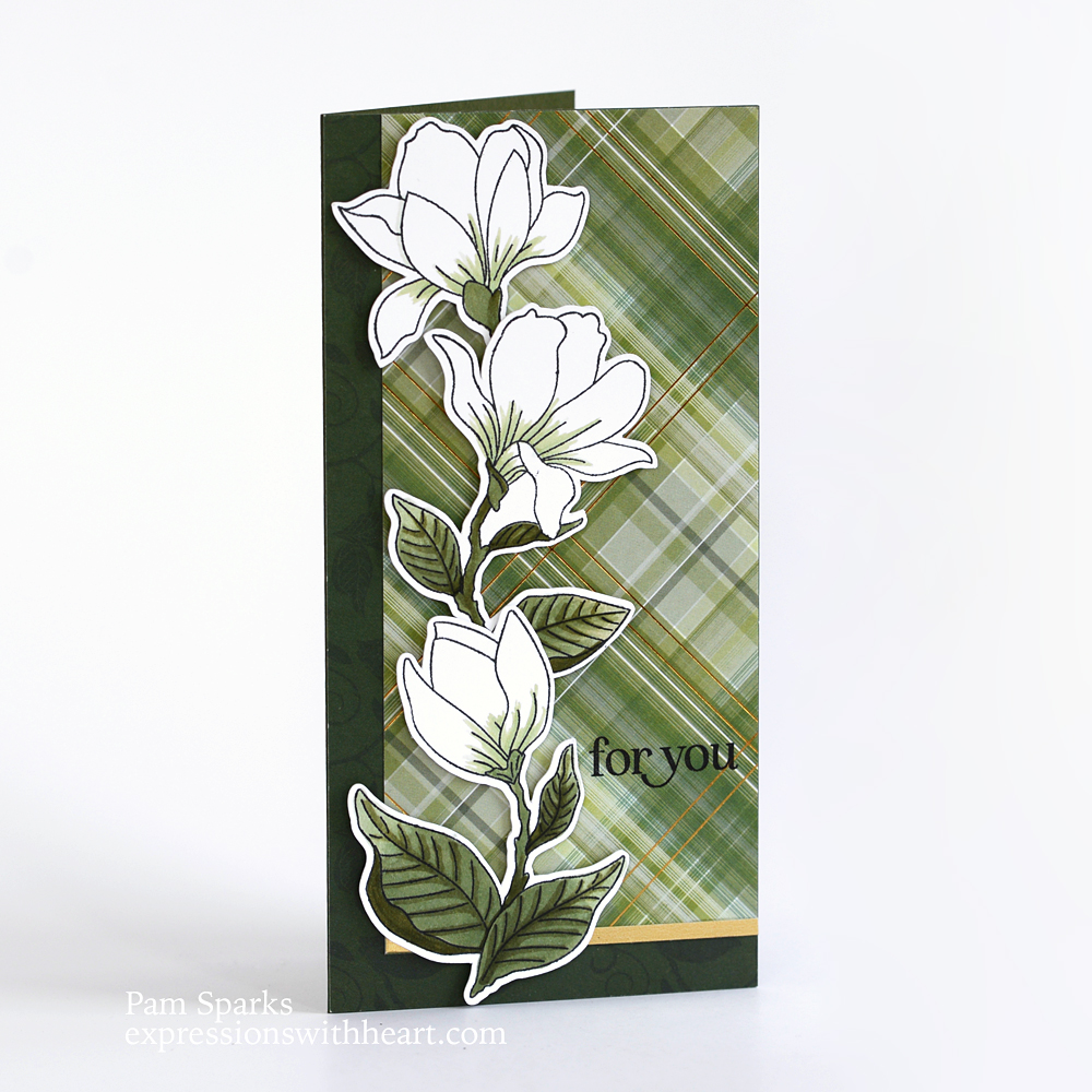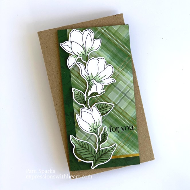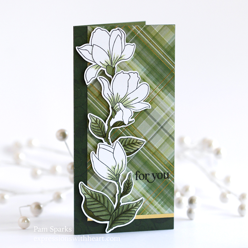 Beautiful! Love your colors and CAS coloring to keep it elegant! I too bought these magnolias recently and made a card — they’re just so pretty!