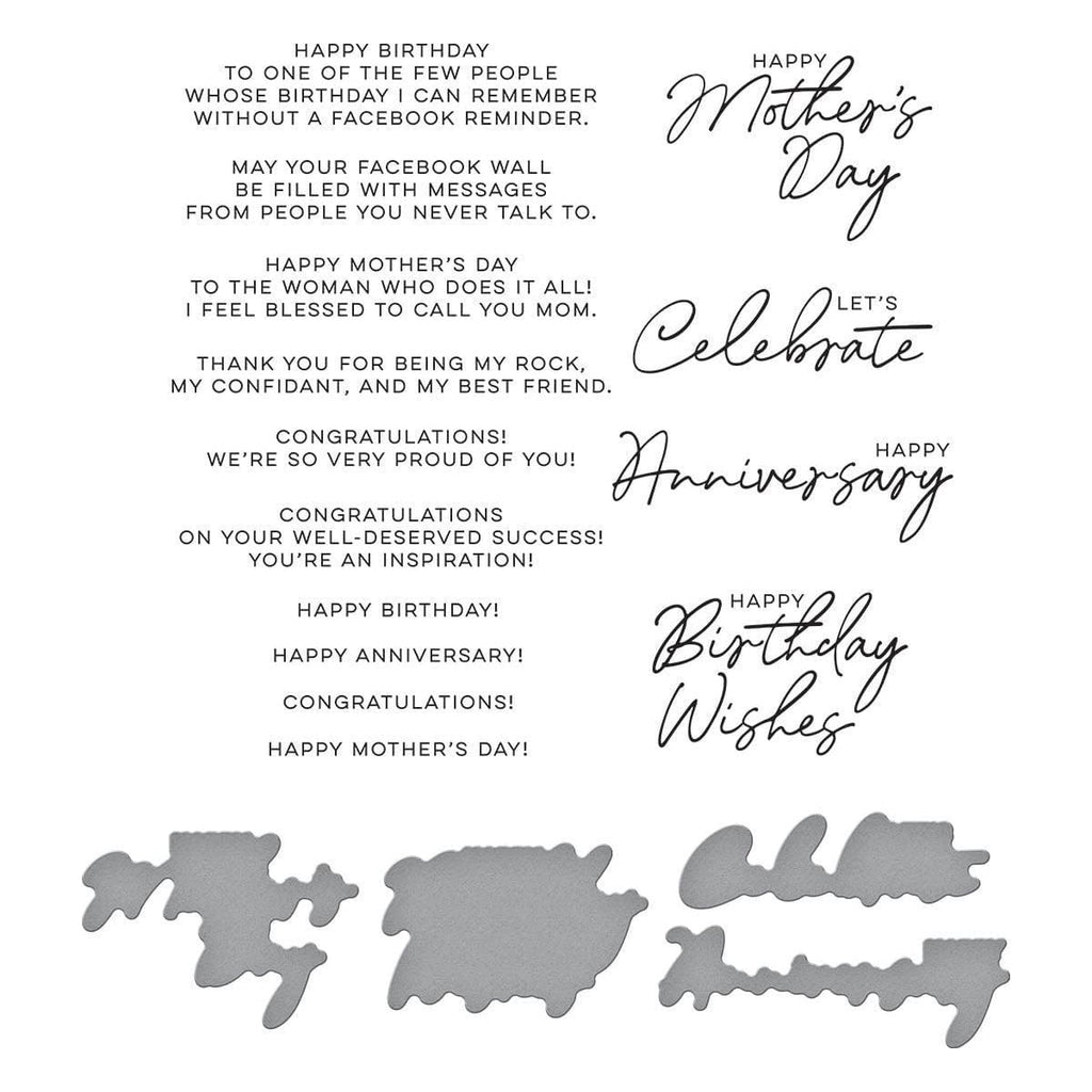 I used the Spellbinders Let’s Celebrate Sentiments BetterPress plate and die set but I used it with Silver Hot foil! Worked great! So many sentiments and messages in this set from Yana!