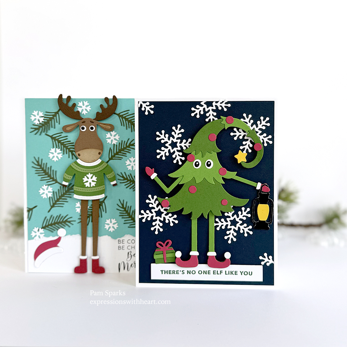 1. Both cards are really fun! Have to say the moose especially makes me laugh! Such a cute design! I am tempted to get that one, as I love the dancin’ series. So far, I have the ghost and the deer. I try to pick the ones that don’t have too many pieces! 🙂
