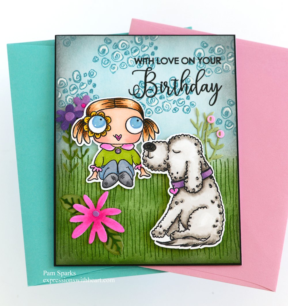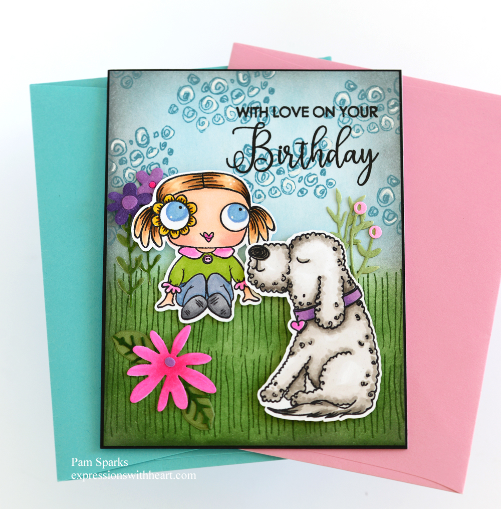 The girl and dog are from ALL & Create Pawsitively Perfect clear stamp set TP-1286.