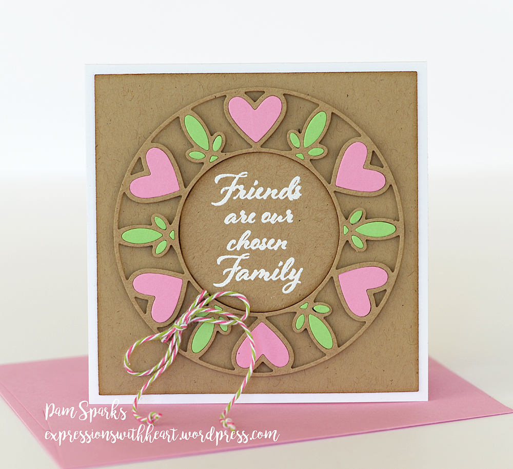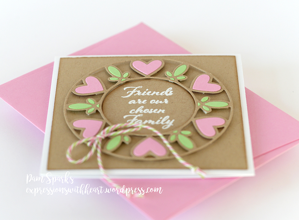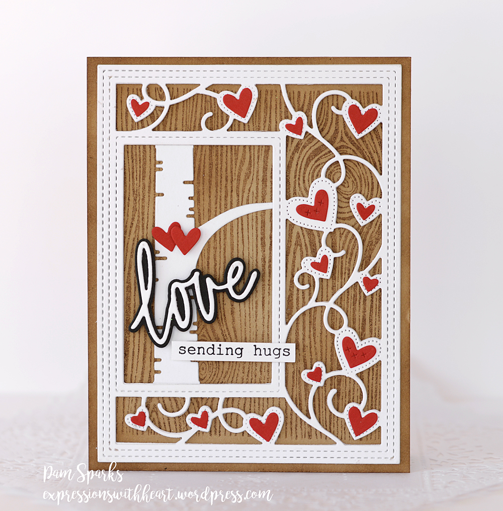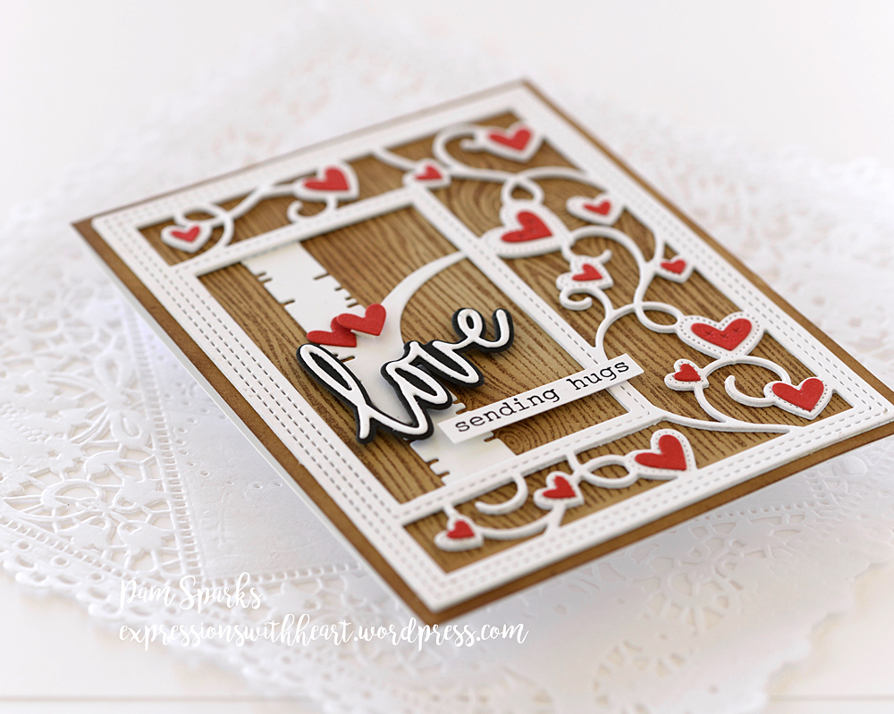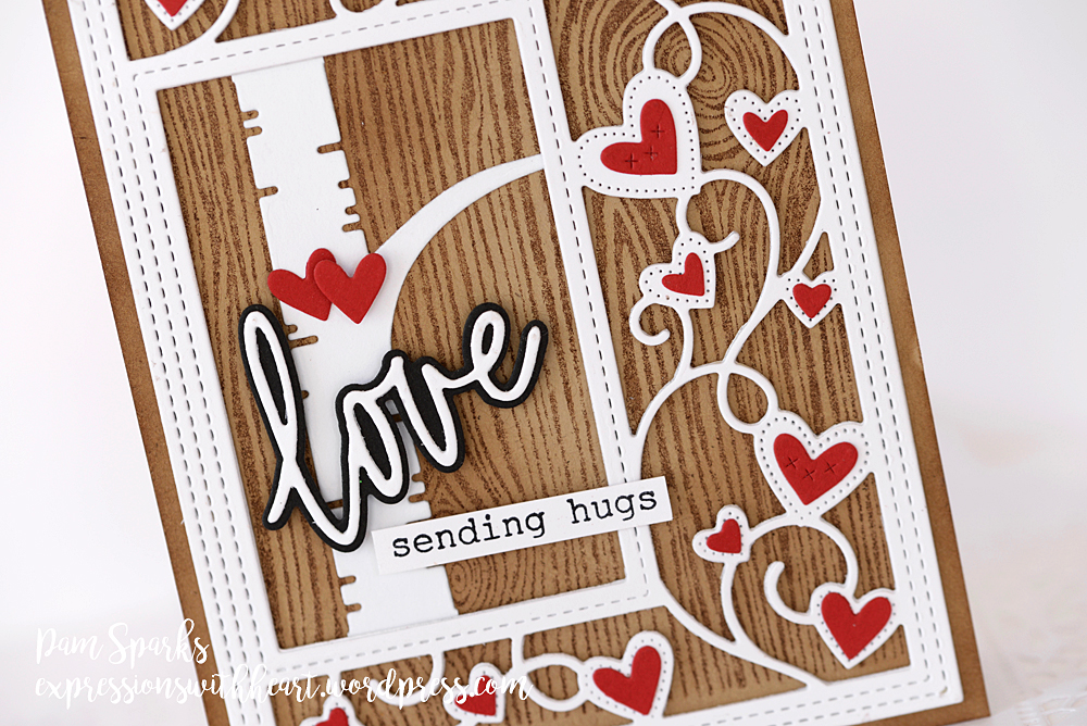 I used various heart dies for the layers. The new Love Jotted Script die works out fun here and a sentiment stamped from the Best Life Typewriter Sentiment stamp set.