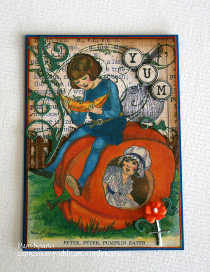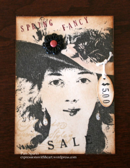 Madge is a rubber stamp from Art Impressions. Stuff happens is from Wordsworth. I colored Madge w/copic sketch markers….almost looks like she was having a bad hair day! lol I’m sure she’s thinking about how splotchy her skin is too! hehehe