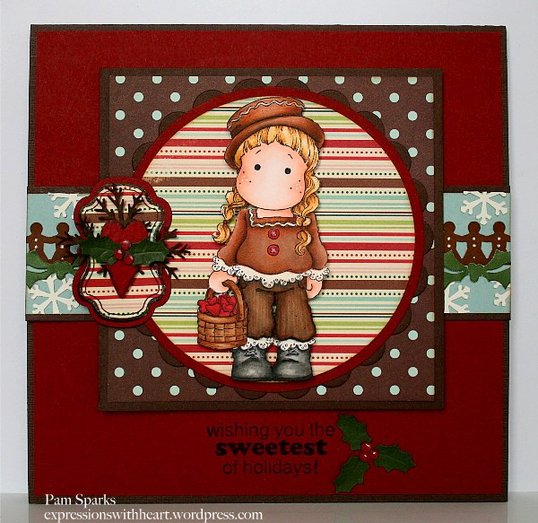 Gingerbread Tilda is part of the new ♥ Merry Little Christmas ♥ release from Magnolia. She is stamped with Memento Tuxedo Black ink and colored with Copic Sketch markers.