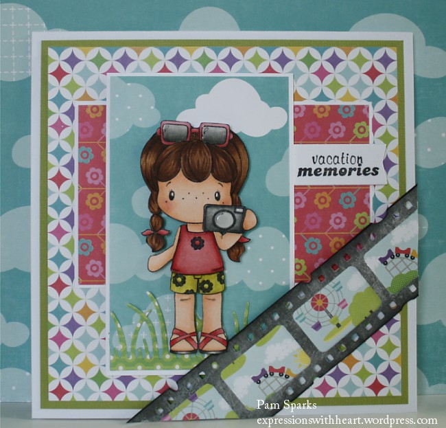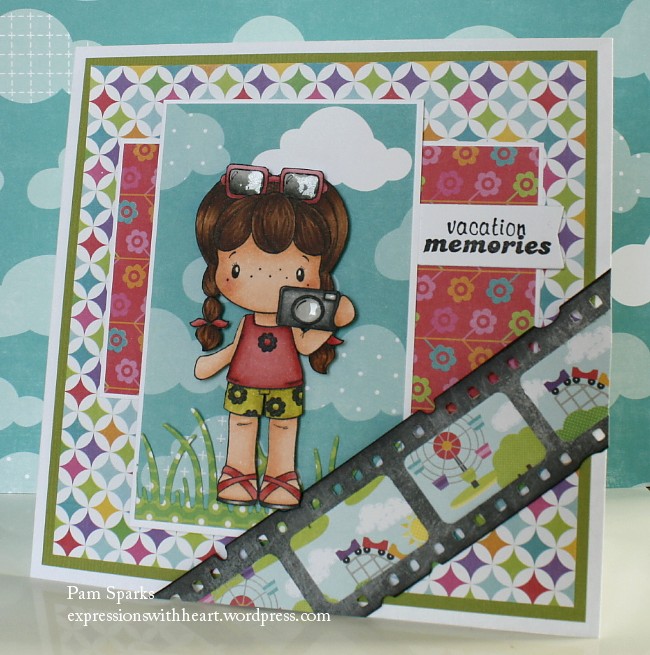 sky is a background stamp by Hero Arts, inked with Printworks Twinkle Blue (yes, I stamped right over the hello and the grass) : )