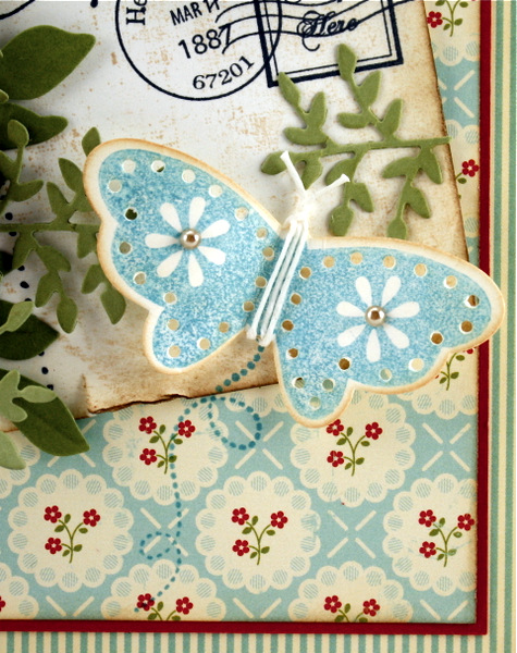 more Memory Box and poppystamps dies…the Memory Box Chic Chevron makes an appearance on the panel. Inked with Mowed Lawn Distress ink and the mini ink blending tool. Some spatters and sequins add to the fun of the design!