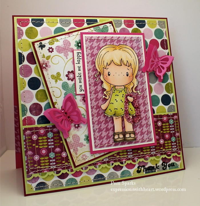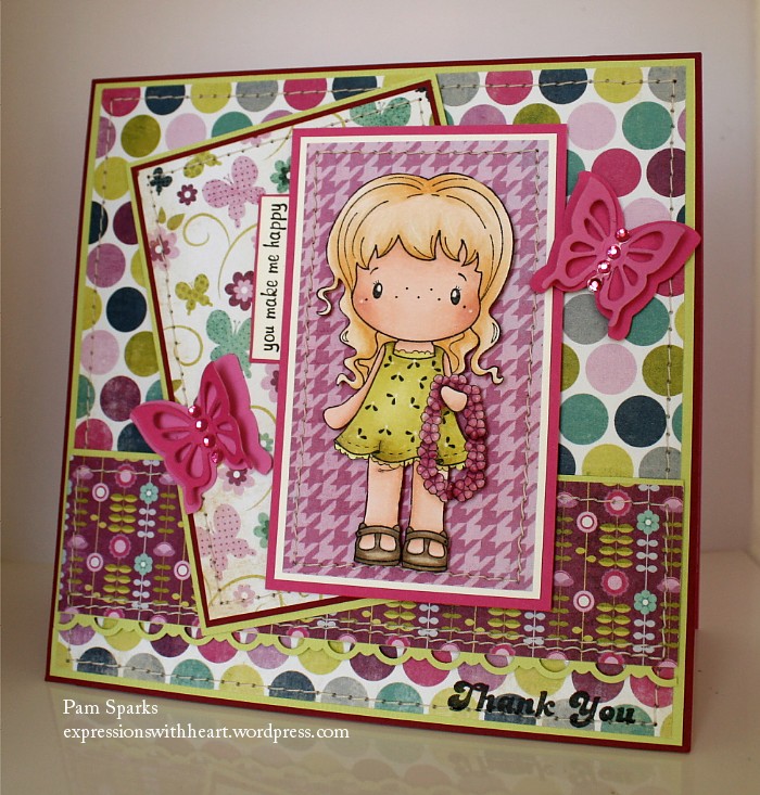 I used the Sweet Stop Sketches Challenge blog’s sketch for Emma and the spin this time is “sweet”. No problem with that! Emma is that and more! lol The Stamp Something Challenge blog’s theme is “Something Sweet”, that’s our Emma! : ) The Wild Orchid Crafts Challenge blog’s theme is “Die”ing to Punch it out! I die cut the number eight and the balloons!