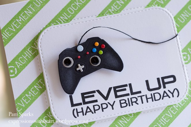 Shoot me now! lol This is another die set that is discontinued and so is the stamp set. boo. The die set is called Game Controller and the stamp set is called Level Up, both by My Favorite Things…so don’t be mad at me! lol