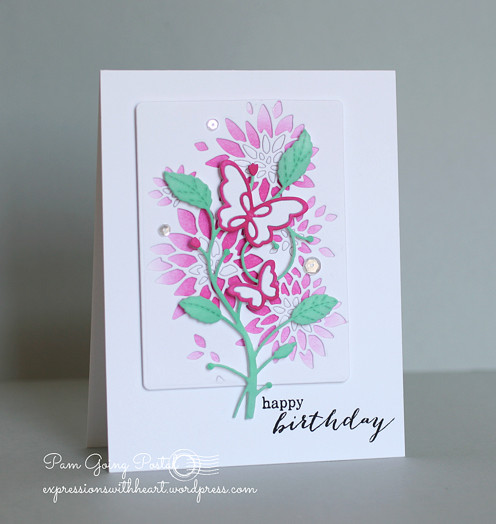 My first card today is all die cuts except for that little birthday stamp from the “in the words” stamp set.
