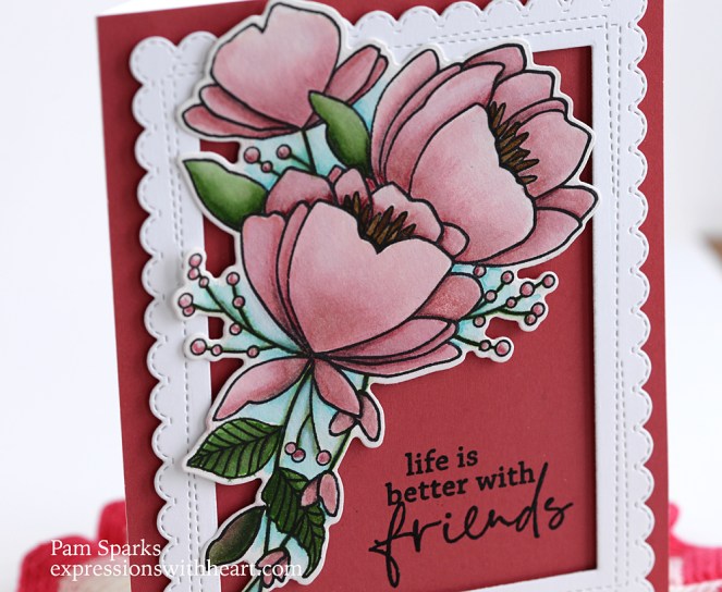 Today’s card is using the NEW All the Happiness stamp set with two coordinating dies for the florals in the set.