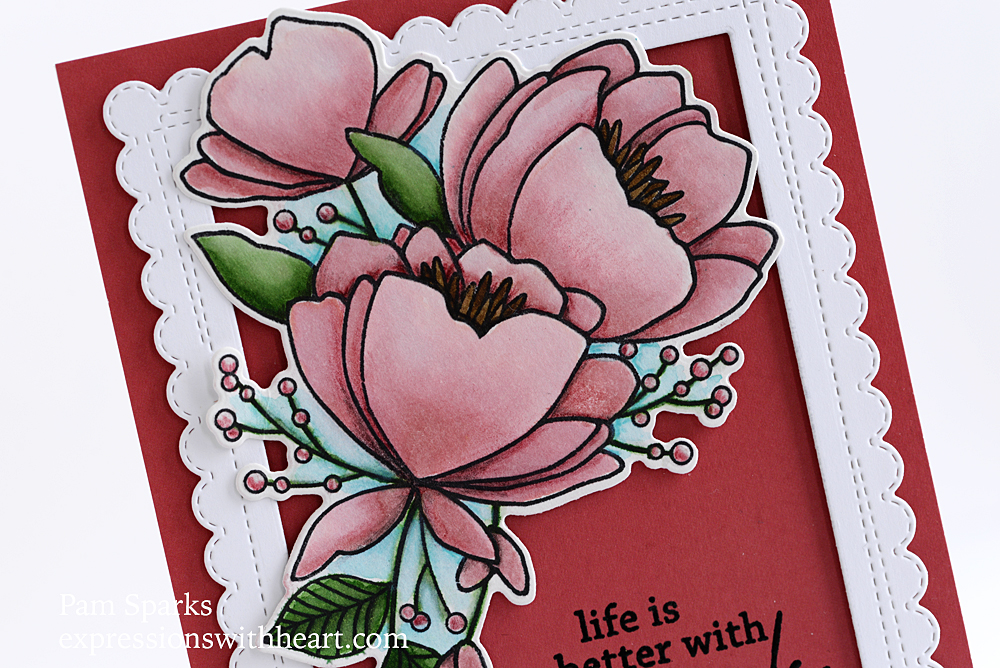 Heat embossed the sentiment with black pigment ink and black embossing powder.
