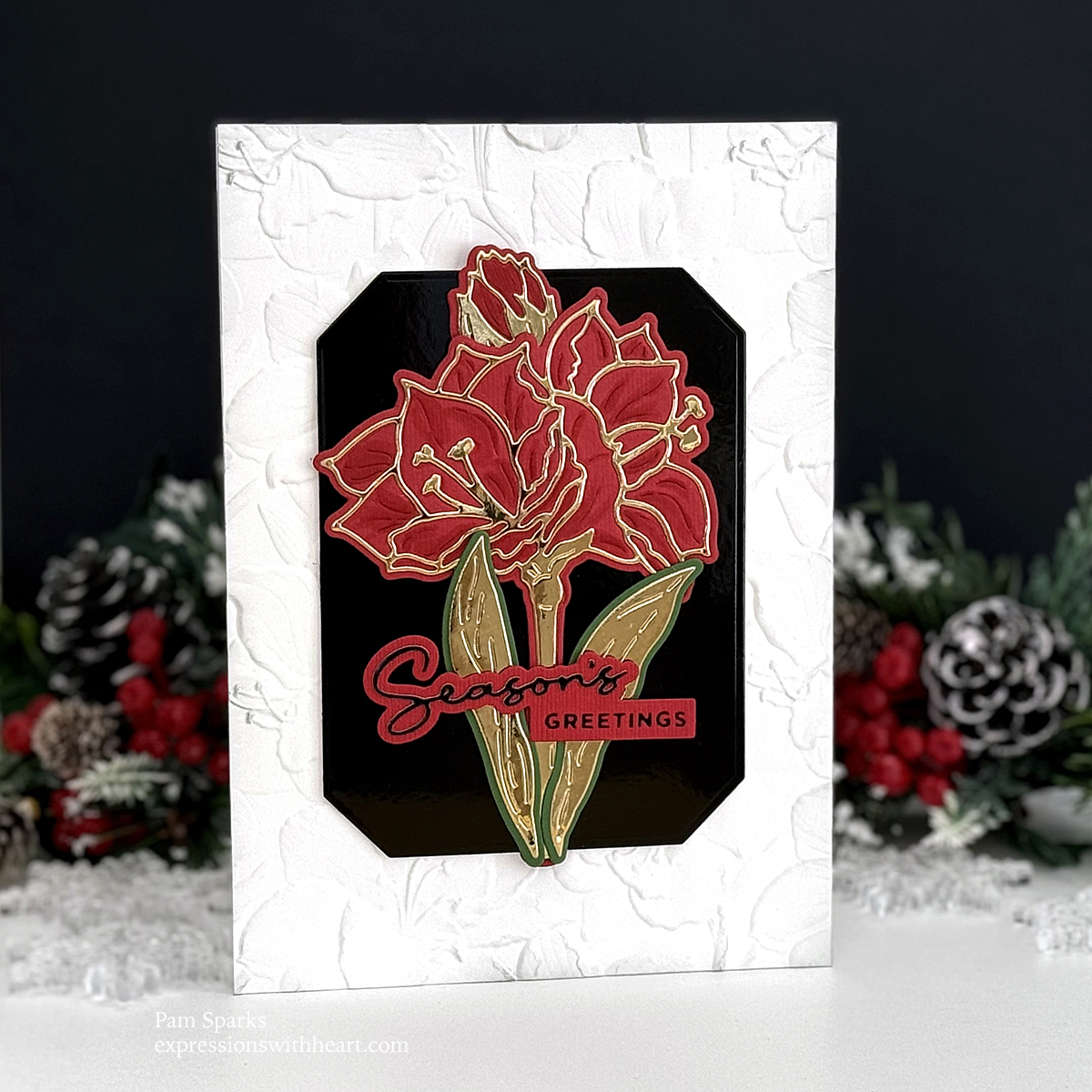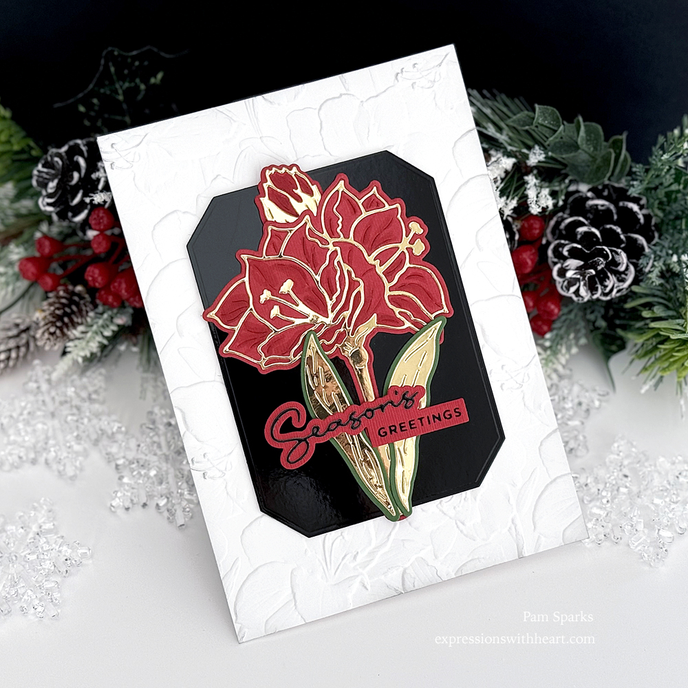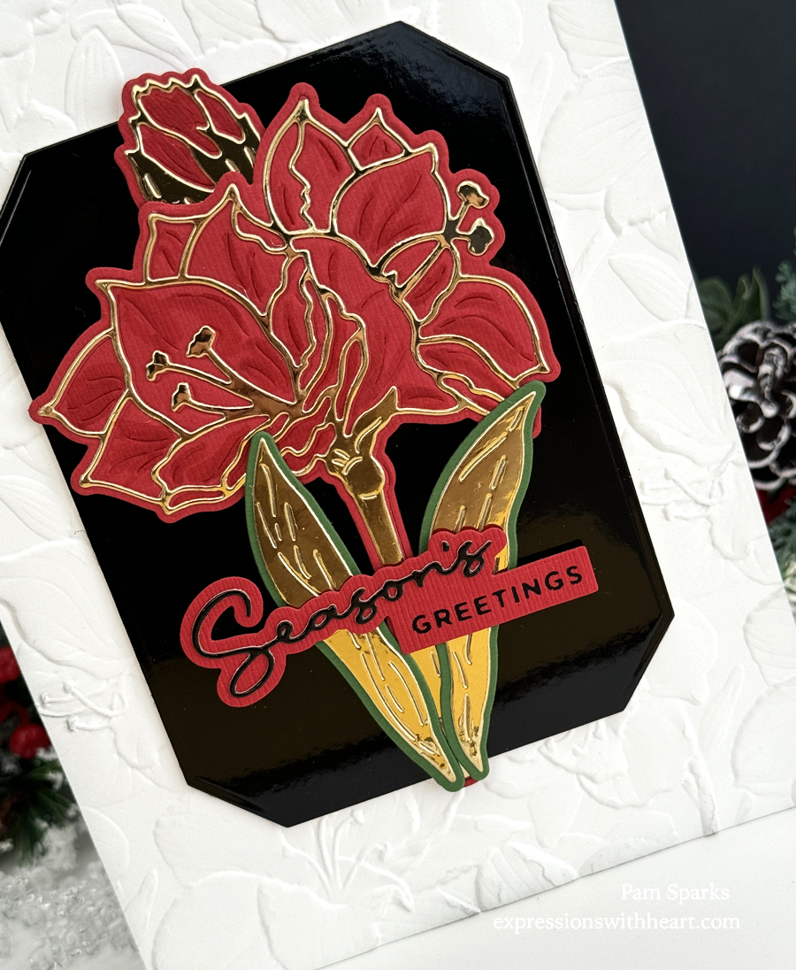 I die cut Yana’s Amaryllis in gold foil cardstock… wow does it shine!
