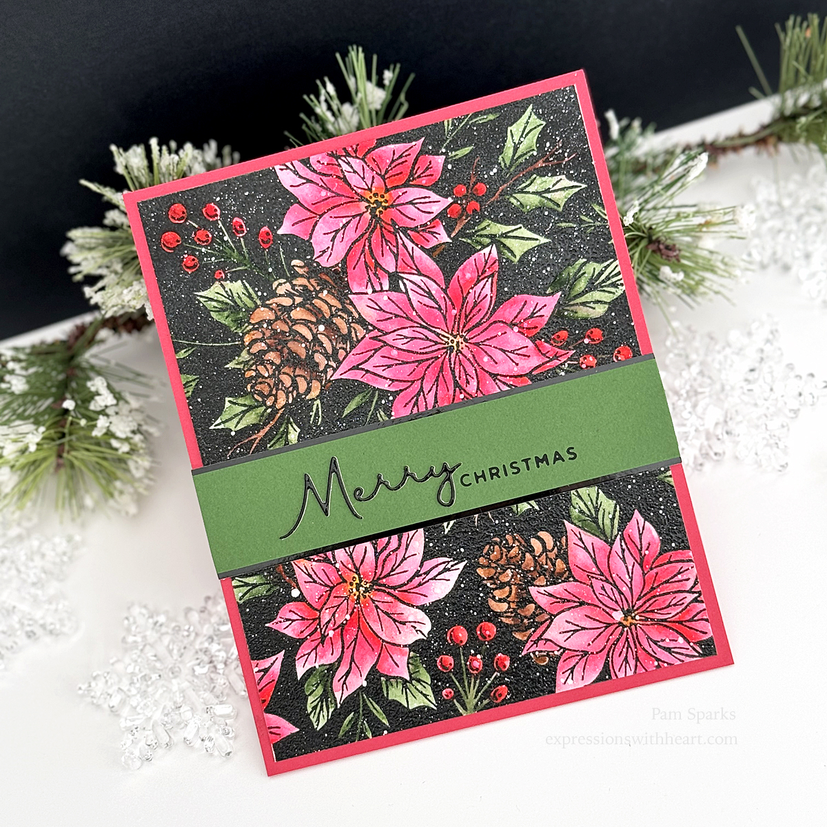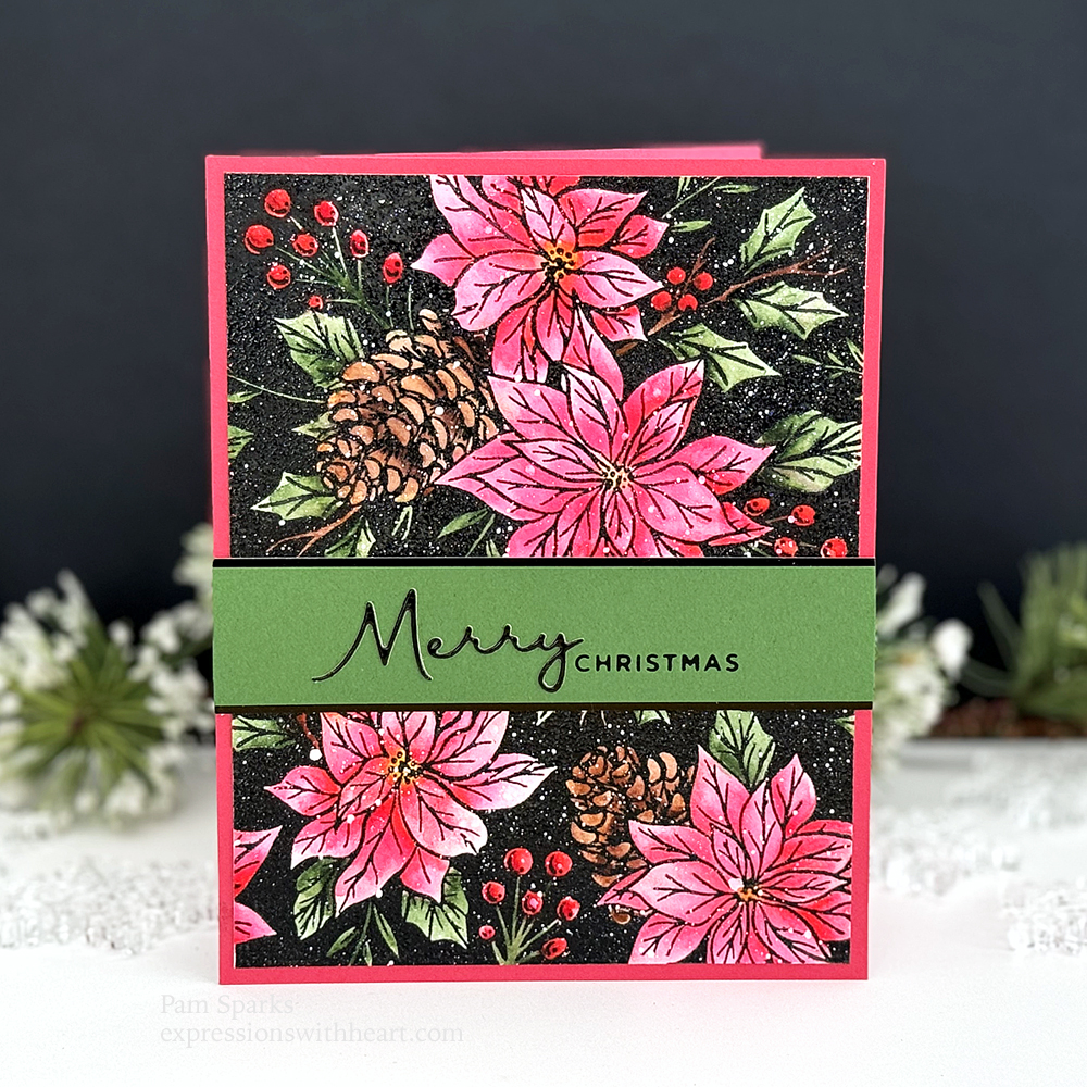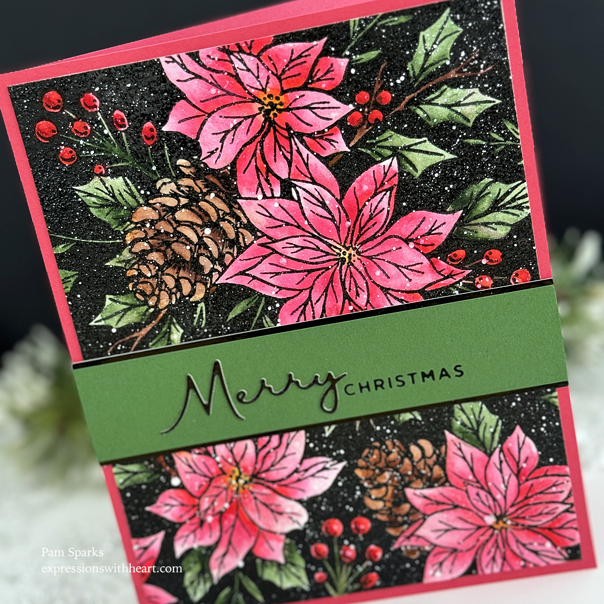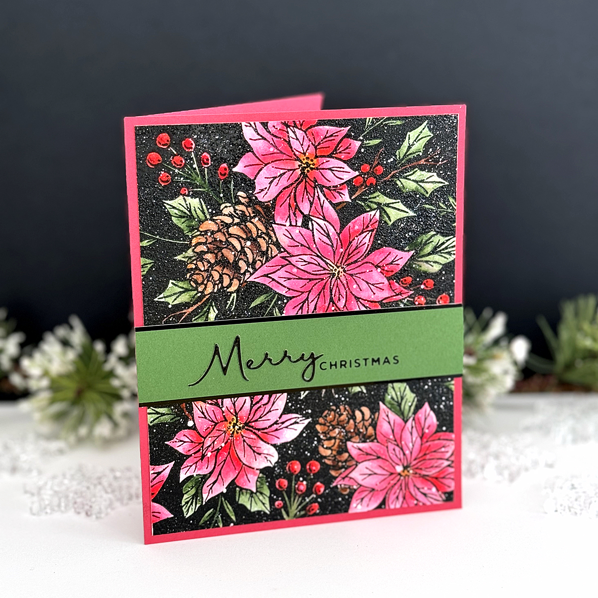 My first card is the NEW Festive Poinsettias Better Press plate from Spellbinders.