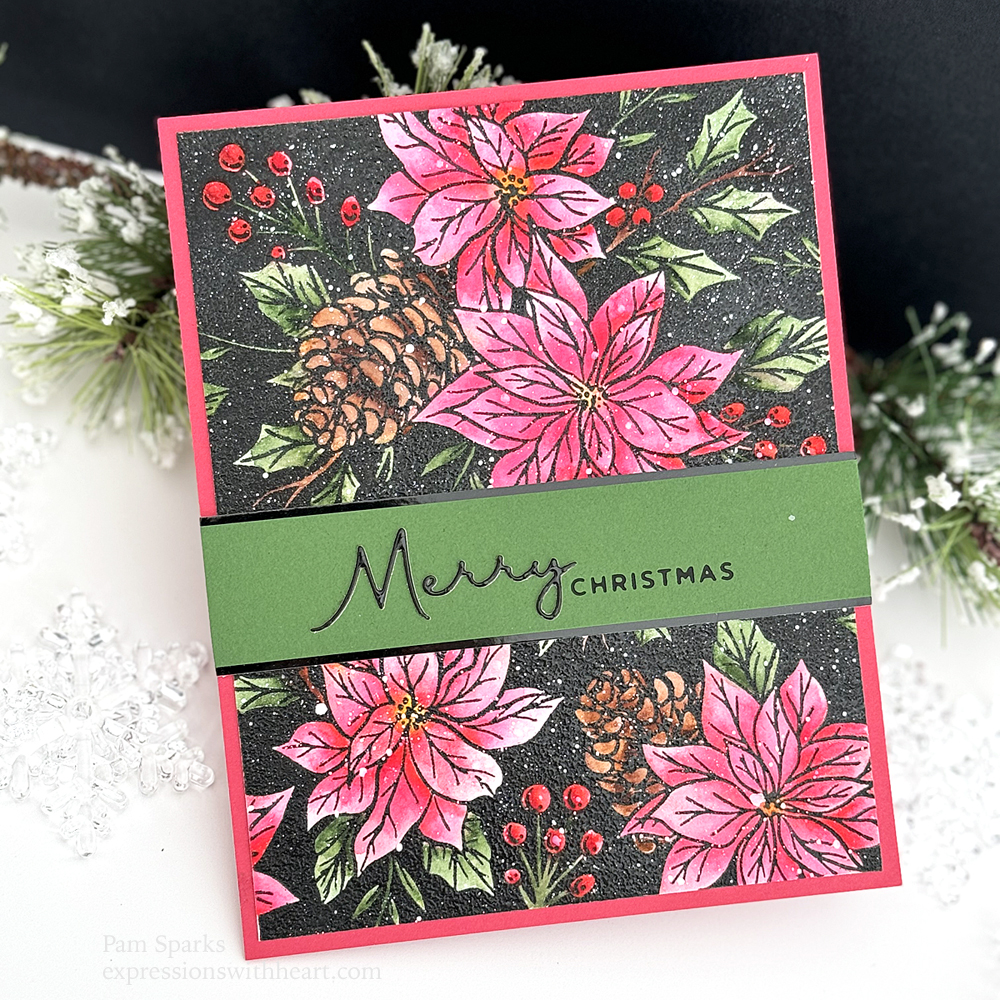 Hi everyone! Two cards to share today! So very Christmas-y! Two of the flowers you think of when it’s Christmas….poinsettias and amaryllis.
