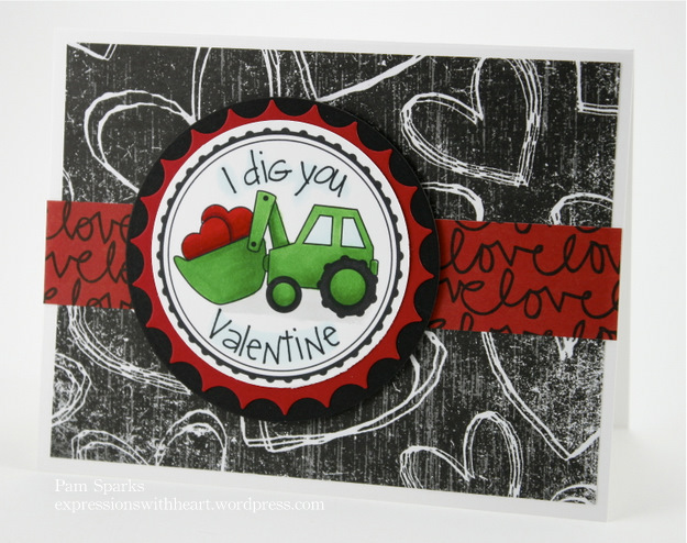 I saw these digital images at Whimsie Doodles and thought they’d be fun to create the grandkids Valentines with!