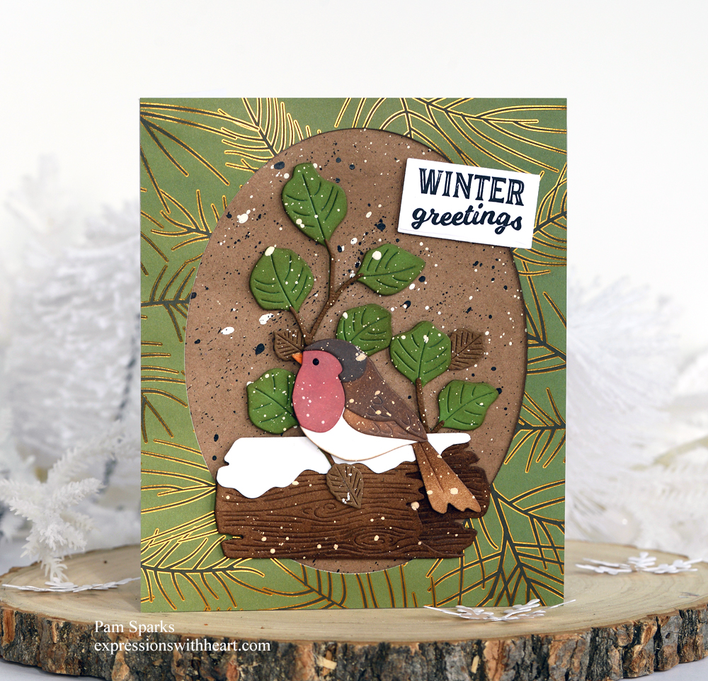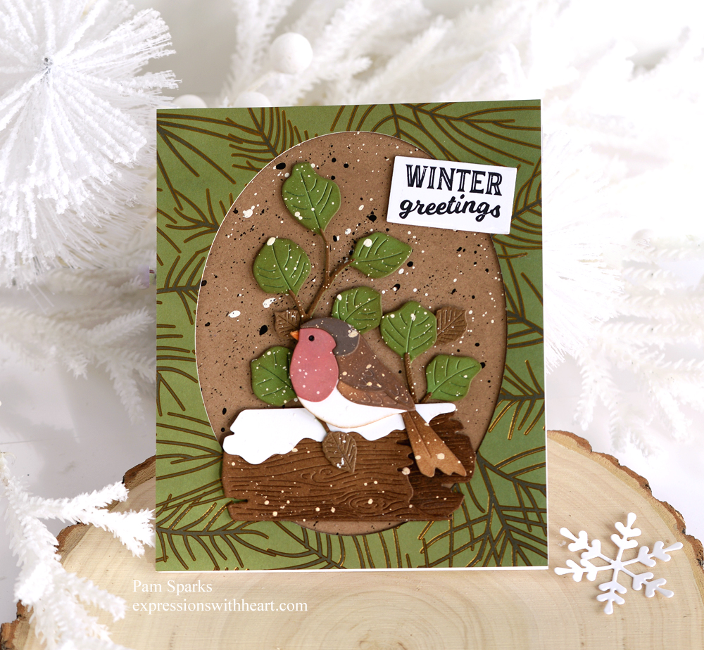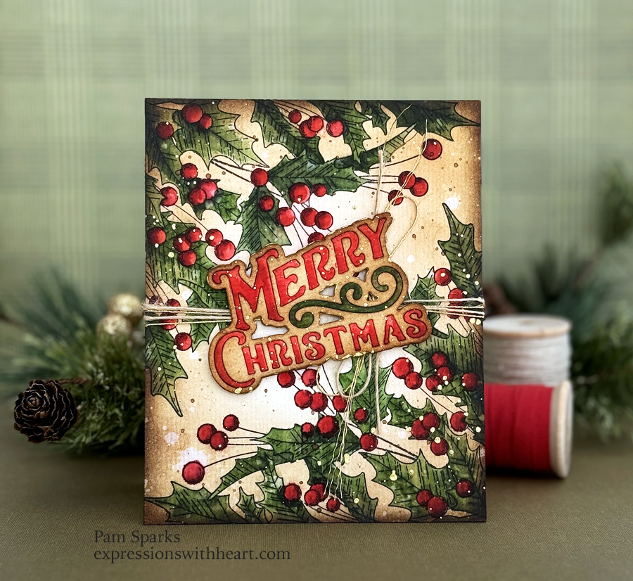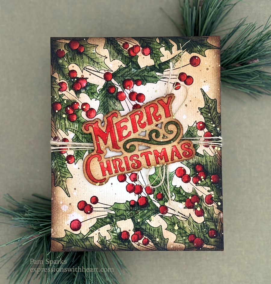 Same stamp set! I stamped the eggs, leaves and Spring Blessings sentiment in Distress Oxide inks. Greetings and the floral images in Versafine Black ink. Then ink blended over the florals on the medium size tag. Be sure you let the black ink dry! I had a little smearing.