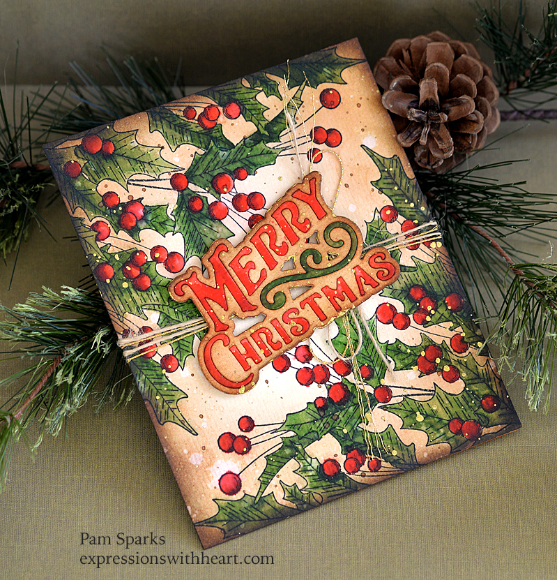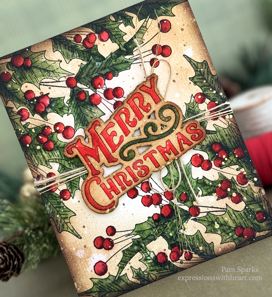 I stamped the small tag with flowers in white and then color penciled over the top.