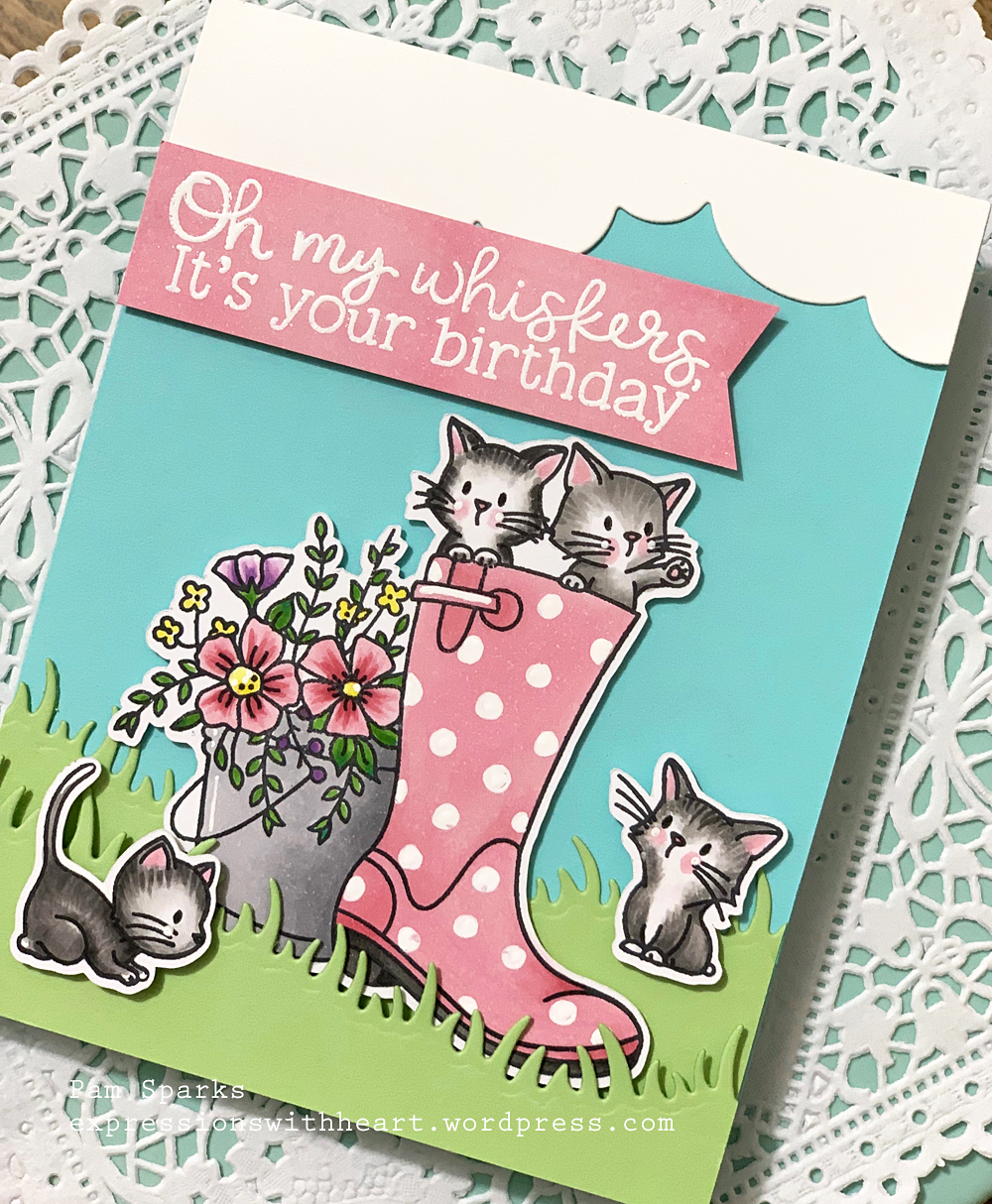 When I saw this stamp set from Honey Bee Stamps, I knew I had to have it for Lizzie Faith’s birthday card this year. The kitties are SO CUTE! Just full of personality.