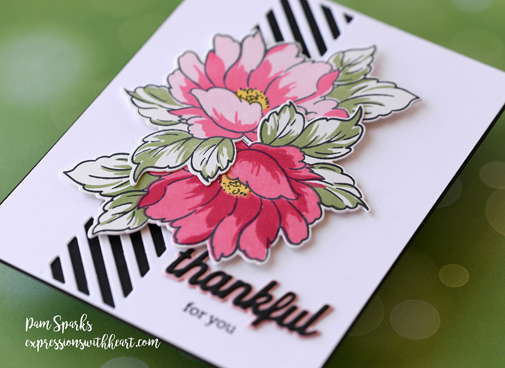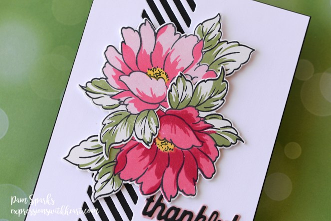 The white heat embossed sentiment is from another set, I’ll link below and I colored a piece of Copic X-press it card with the pinks, let it dry, then heat embossed it in the MISTI. Another sentiment from the same set on the inside.