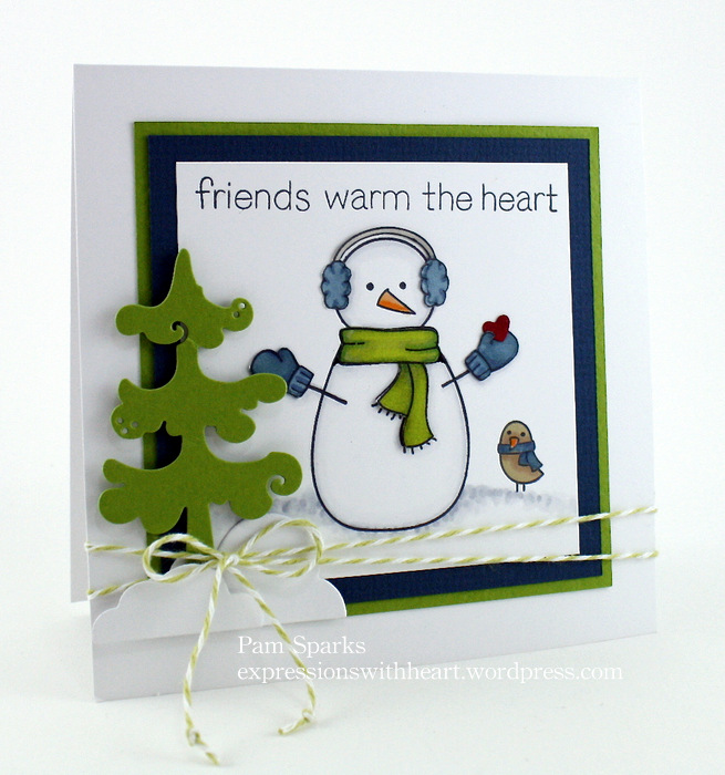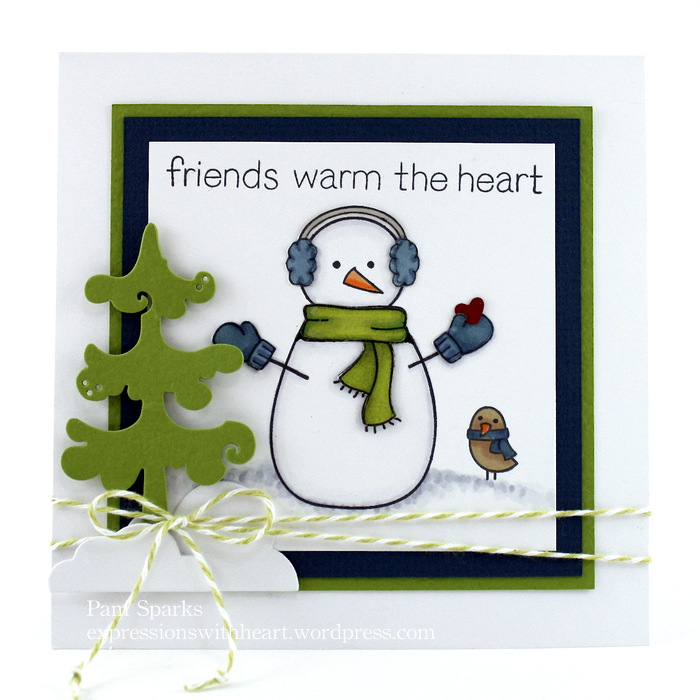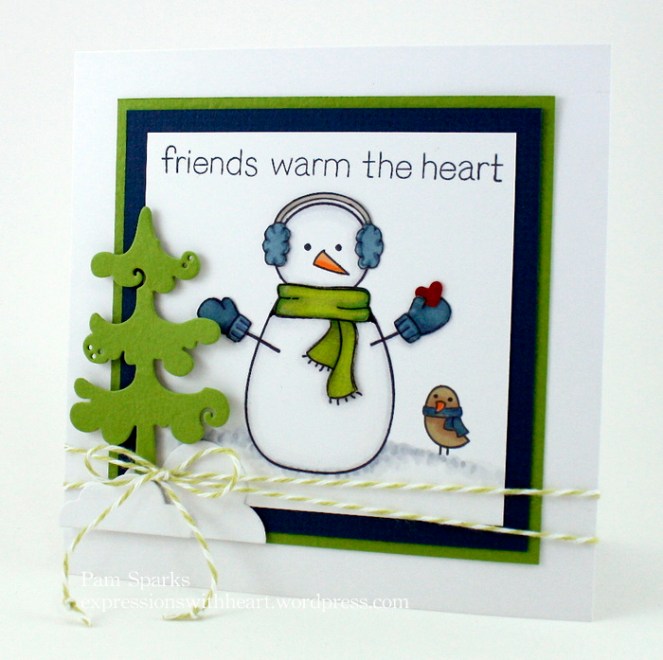 Of course my snowman had to be holding a heart! (MS border punch) I used a Magnolia DooHickeys tree die and limeade twine.