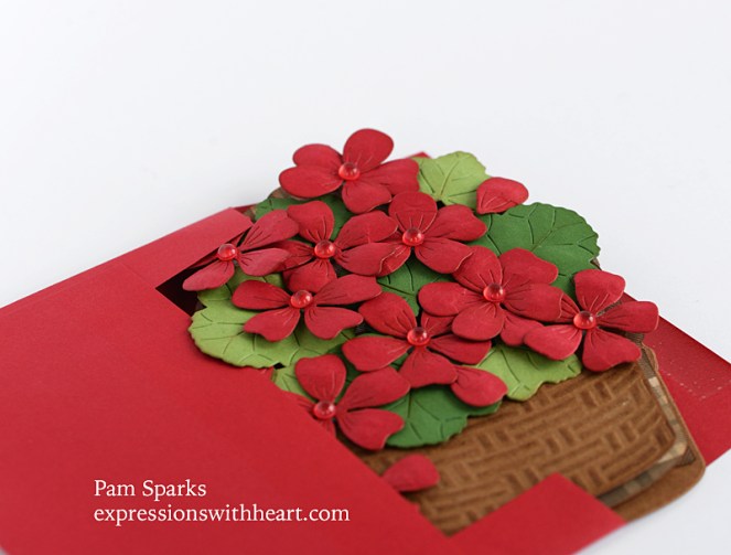 I did this one a little different. I ran it through the Big Shot with the embossing folder setup after I inked it up with Antique Linen Distress Ink pad. (regular dye ink) You ink it on the wrong side, the side that debosses, the design is recessed into the cardstock but you don’t want to go deep this time. Use a thinner sandwich. I inked it up so it’d be easier to see where to brush on the ink. The first time I did it I got too much green on the pink.