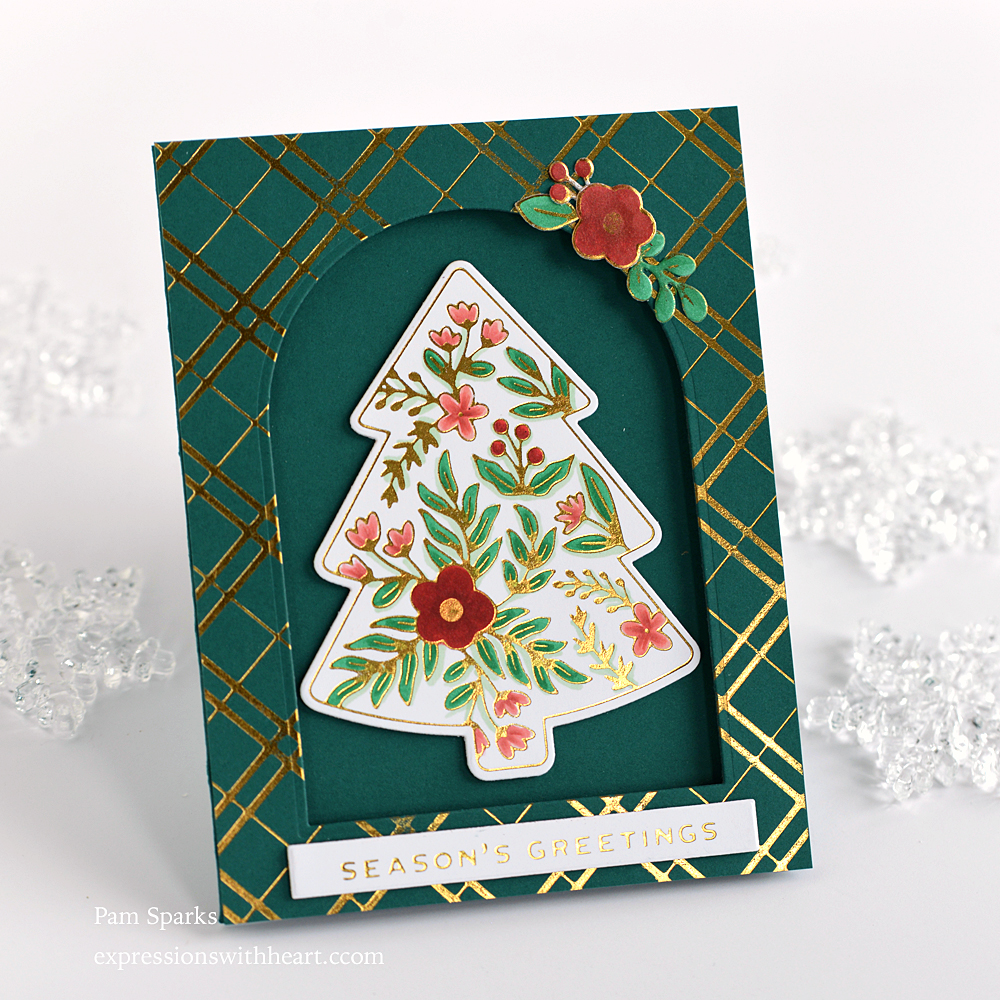 I hot foiled the sentiment on a die cut panel using the Spellbinders Something Special Glimmer Hot Foil Plate and gold hot foil.
