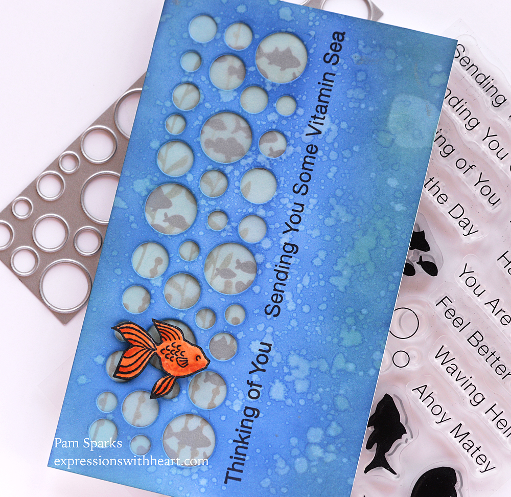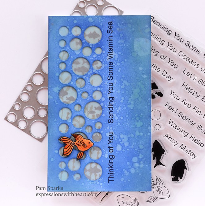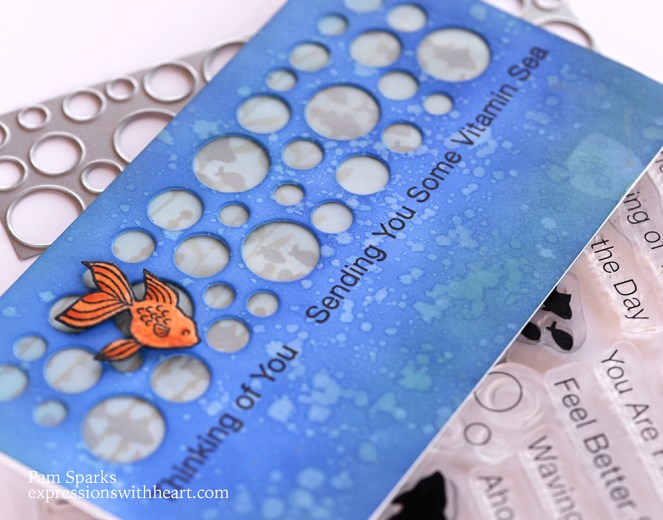 I die cut the center out with the Memory Box Nested Globes die… it was a little short so I had to use the mat to keep it from cutting the bottom straight line, then readjust the die to lengthen the cut. SSS does have a die set that coordinates with this stamp!