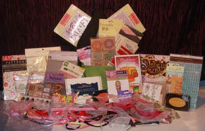 Oops…almost forgot! This cute little Angelica Heartsocks stamp I used on the card above is from Inky Impressions rubber stamps. I did have to alter her this time though…I cut her purse off and made a gift bag (hand cut) out of kraft cardstock. The other stamps used are from Hero Arts, Stampendous, Penny Black and Amuse. EK Success punches, medium retro flower, candle and scallop borders. I used a Cuttlebug embossing folder, Swiss dots, on the pink strip. Pierced the holes in the top right corner. Teeny 1/16th in. brads from Bazzill. Small flower is a Michael’s dollar punch.