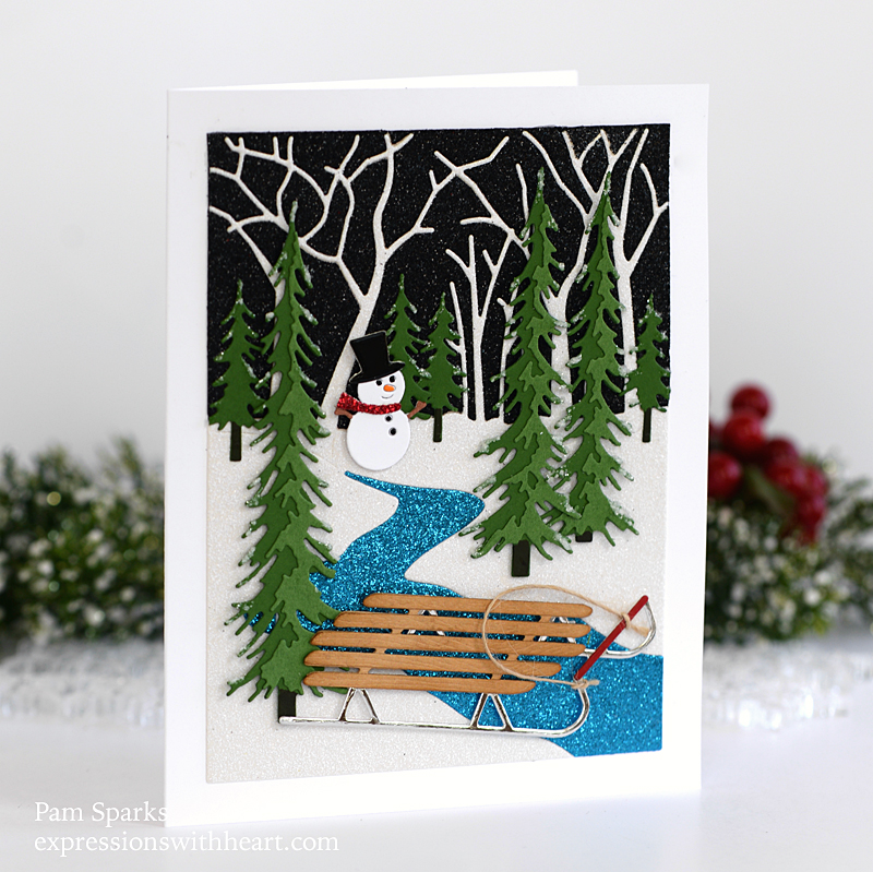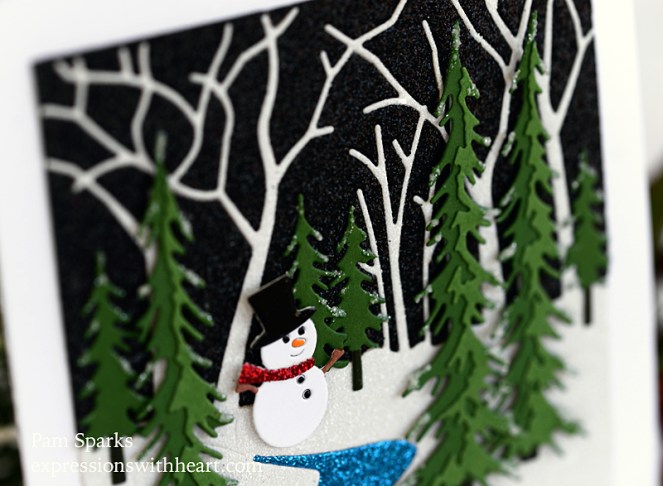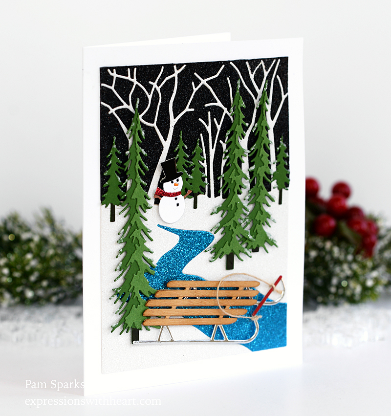 The sentiment is part of the stamp set included in the kit. I heat embossed in white and die cut with one of the rectangle dies from the Birch Press Design Contempo Christmas Greetings die.