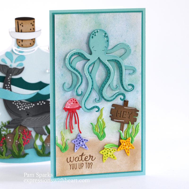 I just got to playing using the same dies and stamp set. I know…I brought in pink! A contrasting color! Out of the box for me! hehe