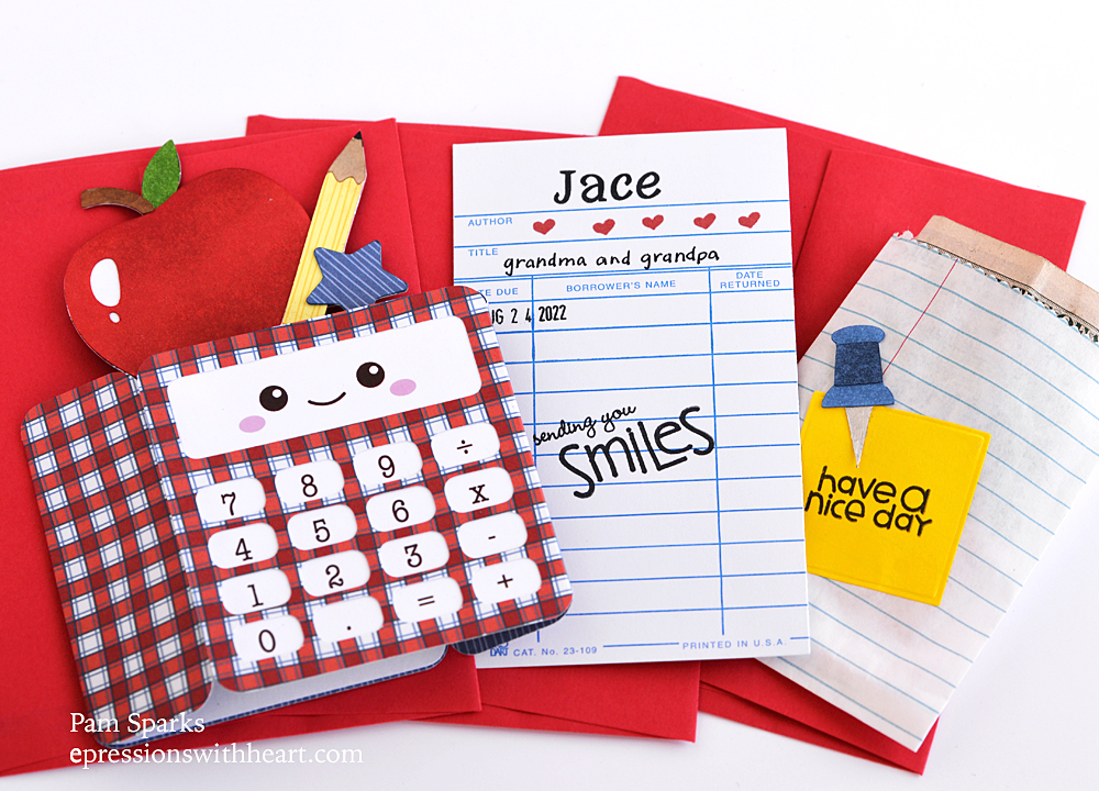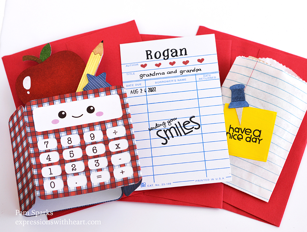 I made these three box cards for our three grands that attend school. Our others are home educated.