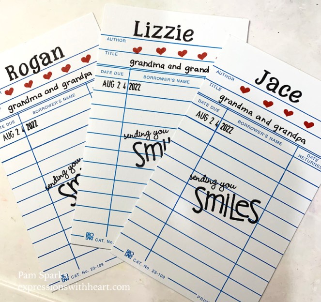 I used a Lawn Fawn alphabet set for their names, a date stamp and another sentiment on the library card. I printed the grandma and grandpa.