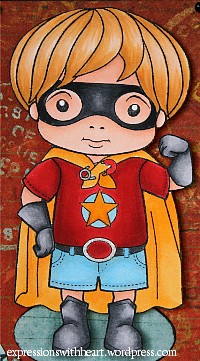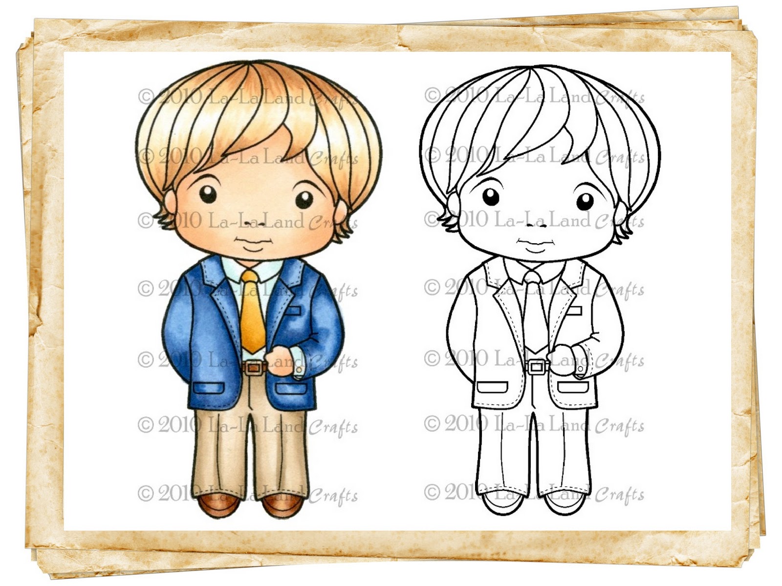 When I colored him, I did the scribble copic marker ink on my stamp pad lid and pick it up with the lightest color and “like” paint it on… then warm grays over the top… for example the hymnbook is E07 painted on with R000…fun! ; )