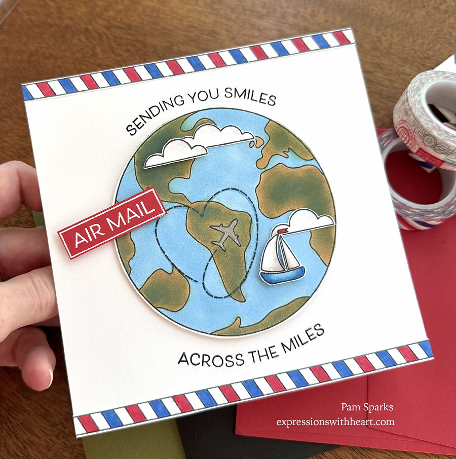 Here I used the NEW stencil set, Scenic Drive, for the background… I love stenciling like this!