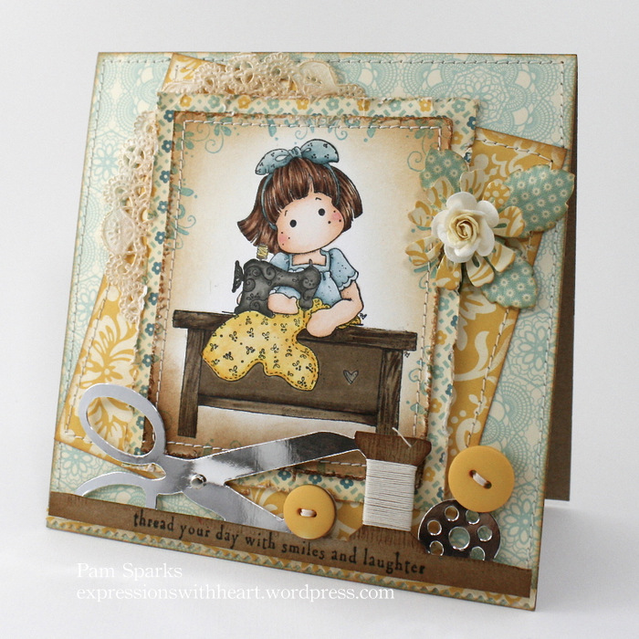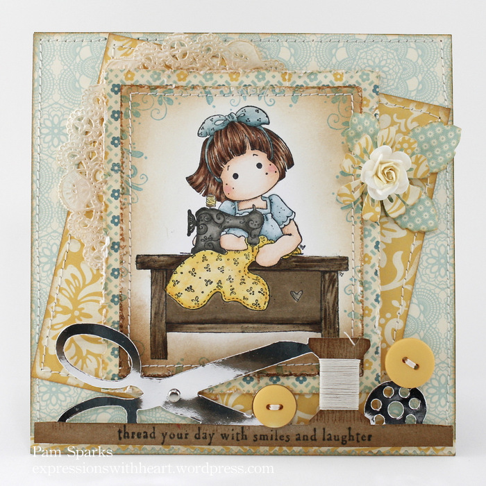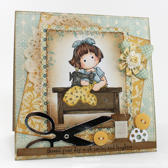 Time for Tilda! Tailor Tilda that is! I love this image… sewing has always been near and dear to my heart and our 3 daughters like to sew and even a couple of the granddaughters are sewing already! So FUN! I’m sure if I hadn’t found stamping in 1994, I’d still be sewing my heart out!