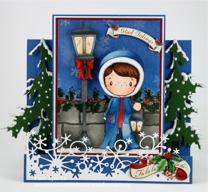 One of the new CC Designs Swiss Pixies… All Through the Night… I love her… so pretty…makes me want to go Christmas Caroling! I love Christmas Carols! Glad Tidings we bring, to you and your kin…good tidings for Christmas and a Happy New Year! So Fa la la la la! All Through the Night!