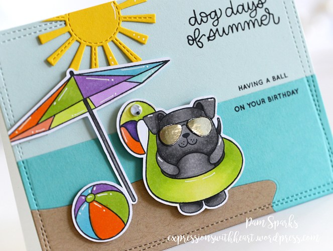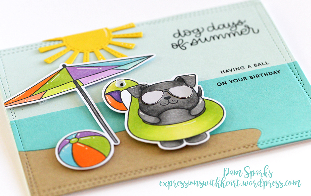 Super easy card really… a Lawn Fawn Stitched sun die… the MFT Beach die set and the Memory Box Wrapped Stitch Rectangle die that I love to use!