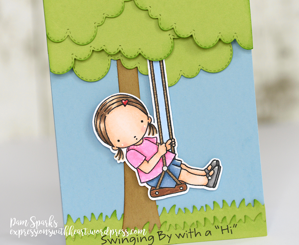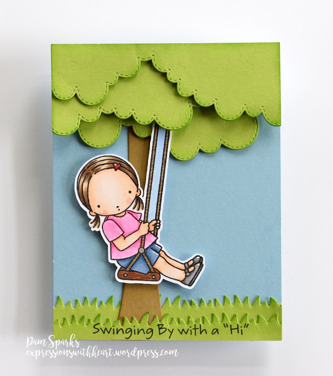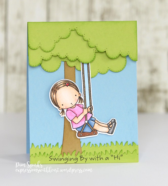 Hi everyone! When this cute gal came out awhile back I knew I had to have her! We have one granddaughter that especially loves to swing and she loves cards too! I love it when the idea for personalizing a card comes easy!