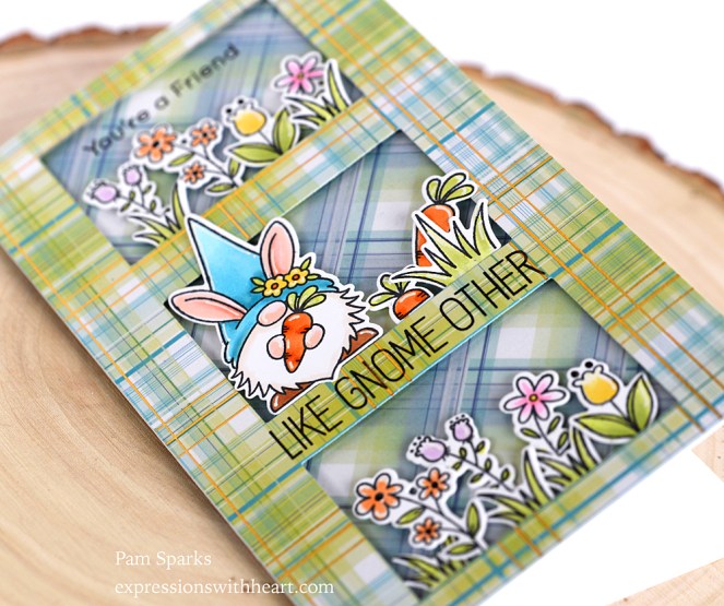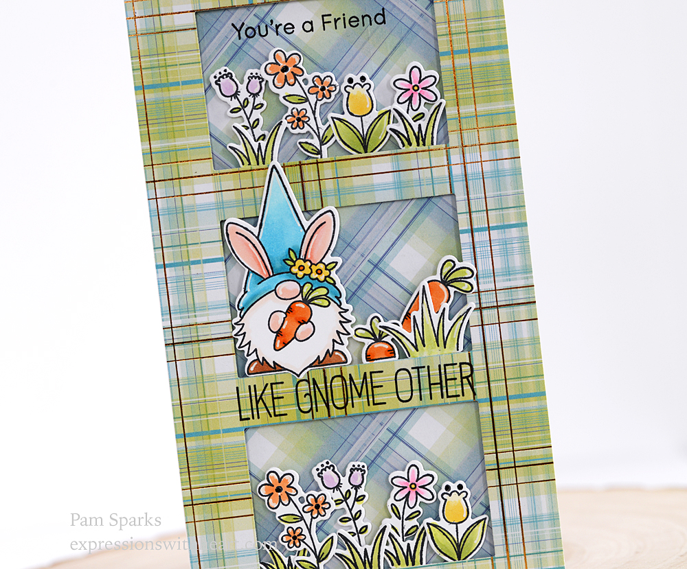 I’m using the NEW Simon Says Stamp Mini Slimline Windows die today from the latest release, ‘All The Feels’….very fun to create three little scenes with the NEW My Favorite Things Spring Gnomes Stamp and die sets too!