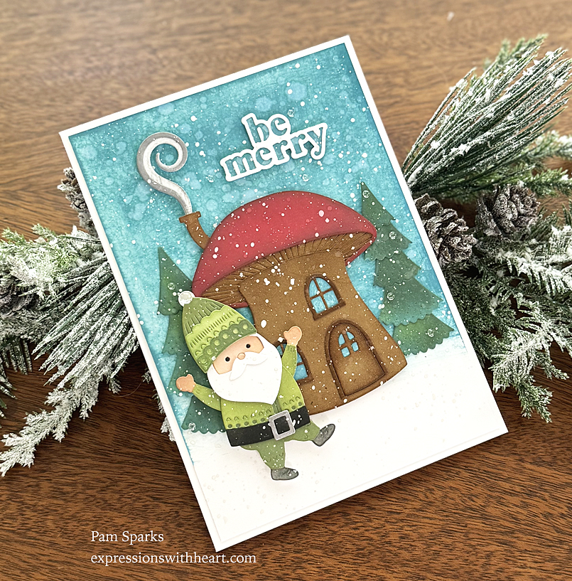 I swiped the Red Geranium ink pad over white cardstock and then die cut the Merry Christmas Wave die from that. I used scor-tape on the back side of the die so I could easy layer in the white letters, then stuck it to the solid die backer. Fun!