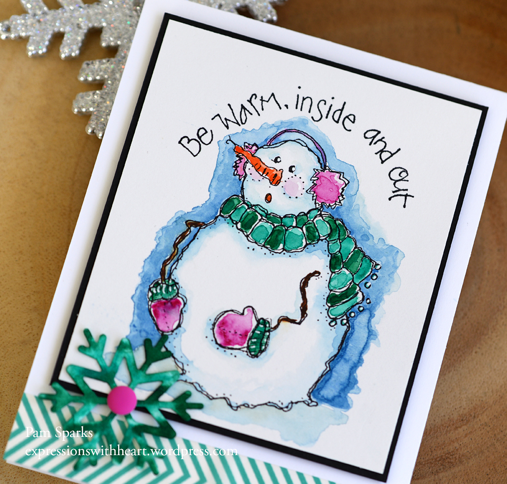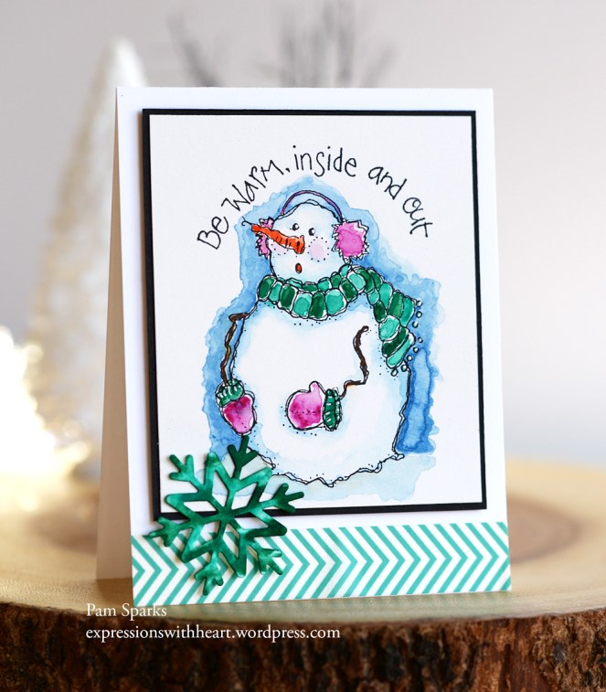 I inked the raised sky side with teal ink on this first one…after embossing I sprayed both cards with Sparkle spray. Can you say shimmery?!