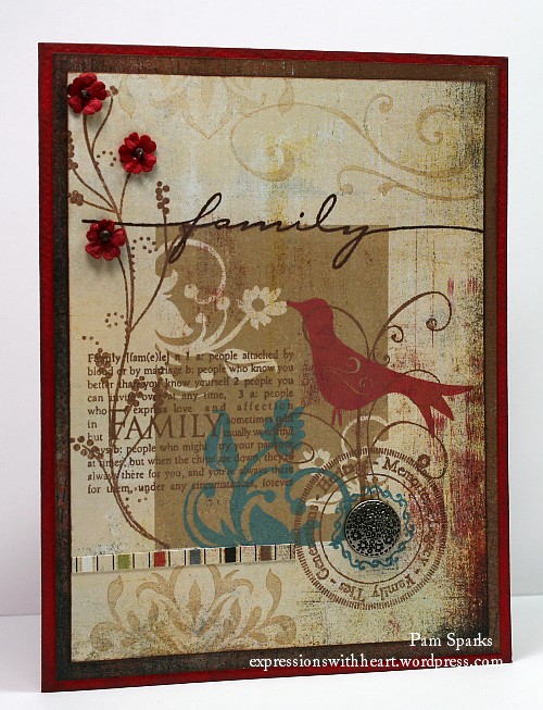 I LOVE the Distress ink color Shaded Lilacs…here I combined it with Tumbled Glass, both colors on the embossing folder before I ran it through the Big Shot.