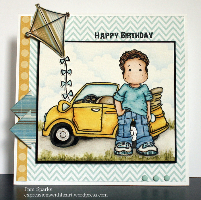 My first one is a birthday card for our oldest grandson. I used an old alphabet die set from Quickutz called Diesel. The birthday wishes postal circle is from Inkadinkado.