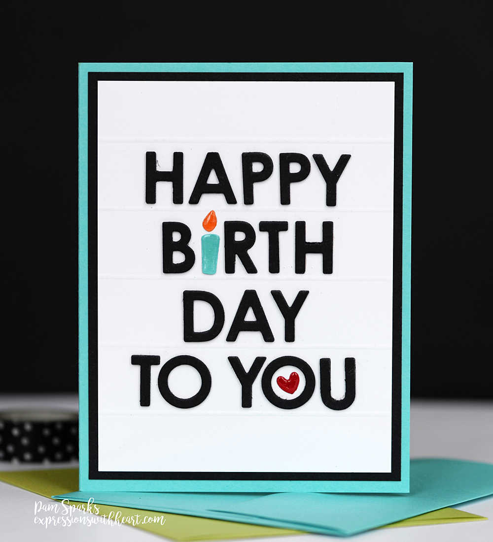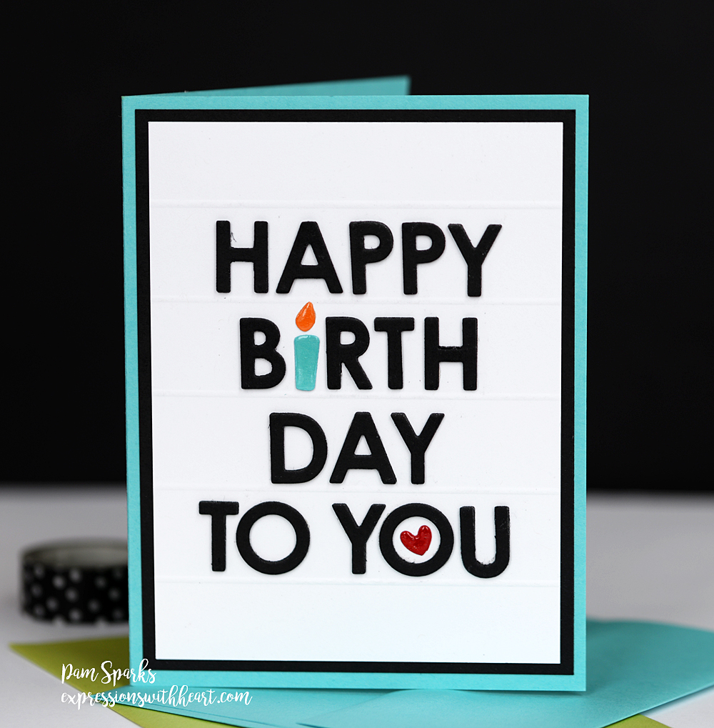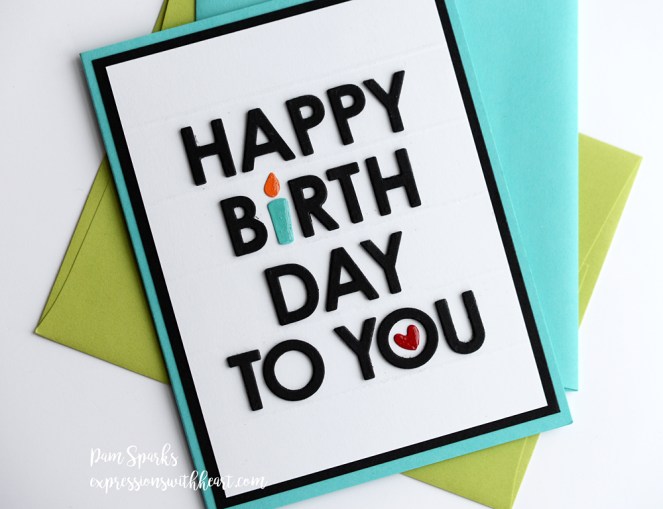 This one I used a different alphabet. It’s Parker from Memory Box. (my link below is to Parker lower case, upper isn’t available anymore) The little candle is from a Quickutz die set and the heart was on my desk.