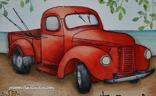 I just got this truck stamp from Printworks…it made up great for Father’s Day but I think it’ll be fun for many other occasions for men too…especially birthdays. Can you see it at Christmas with a tree out the back?!!! I have to work on that idea!!! I love Christmas!