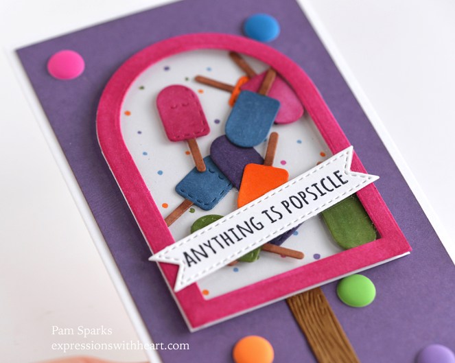 Super cute little popsicles…the die comes with two on it, one with the cute face and stitch lines and the other solid.