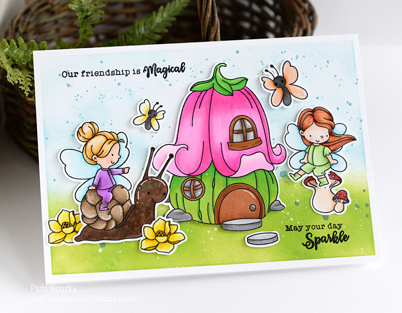 I stamped with Memento Tuxedo Black ink and colored with Copic Sketch Markers.