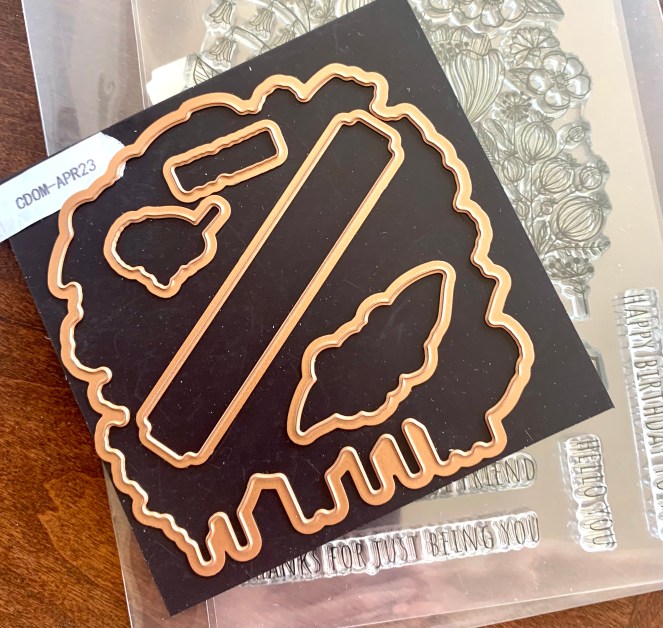 My second card I used two floral sections of the Stamp from the stamp and die club to create a wreath! So fun!