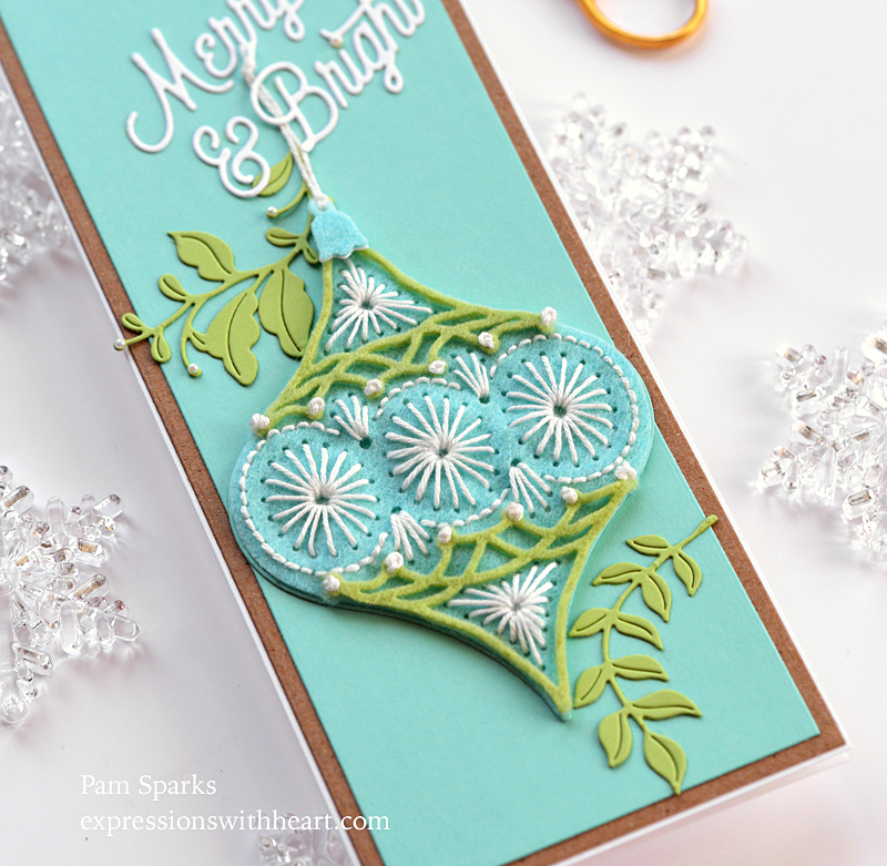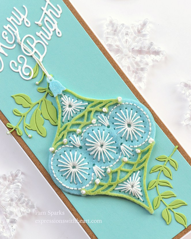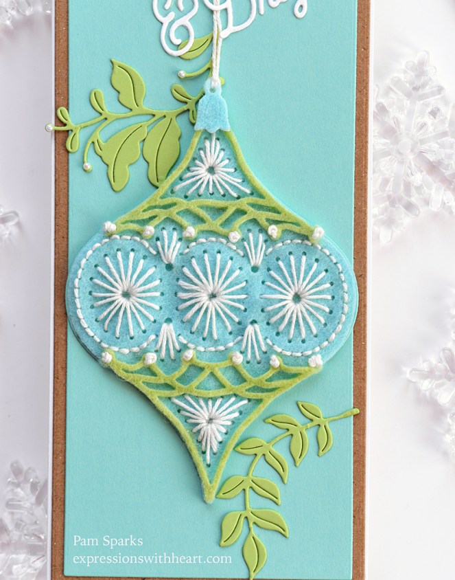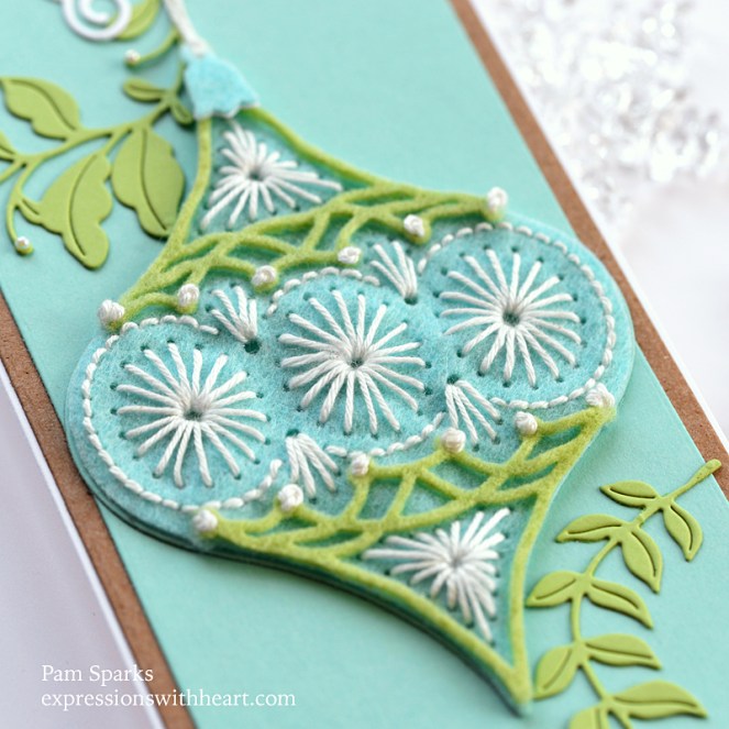 Hi everyone! It’s been some time since I used wool felt so I found my box and set to work die cutting and stitching up this new die from Spellbinders Stitched Christmas release.